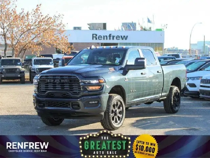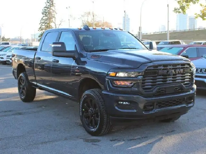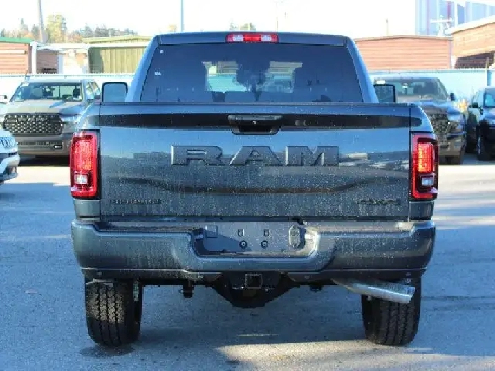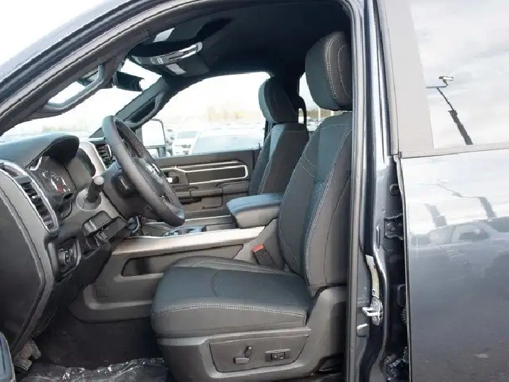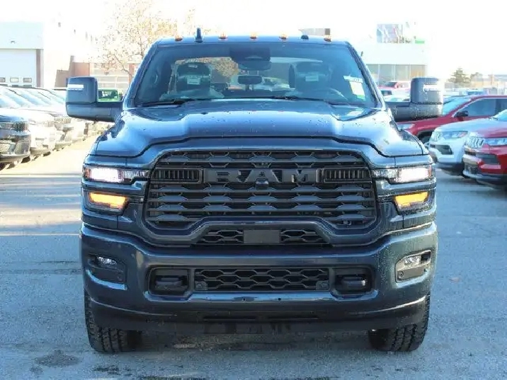 - REMOTE START SYSTEM,TIRES: LT285/60R20E OWL ON/OFF-ROAD,IP-MOUNTED AUXILIARY SWITCHES -inc: Dash Pass Thru Wire Circuits,TRANSMISSION: 8-SPEED TORQUEFLITE AUTOMATIC -inc: 12 Single-Wheel Rear Axle,WHEELS: 20 X 8 BLACK ALUMINUM,NIGHT EDITION -inc: Gloss Black Nostrils/Black Grille Tires: LT285/60R20E OWL On/Off-Road Black Exterior Badging Wheels: 20 x 8 Black Aluminum Body-Colour Grille Surround Black Interior Accents Black Wheel Centre Hub Body-Colour Front Bumper Painted Rear Bumper,CLEARANCE LAMPS,FORGED BLUE METALLIC,HEATED SEATS & WHEEL GROUP -inc: Heated Steering Wheel Front Heated Seats,GVWR: 5 352 KG (11 800 LBS),5TH WHEEL/GOOSENECK TOWING PREP GROUP,BLACK PREMIUM CLOTH FRONT BUCKET SEATS -inc: Bucket Seats Fold-Flat Load Floor w/Storage Power 8-Way Adjustable Driver Seat Rear 60/40 Split-Folding Bench Seat Front Seatback Map Pockets Power 2-Way Driver Lumbar Adjust Full-Length Upgraded Floor Console,ENGINE: 6.7L CUMMINS I-6 HO TURBO DIESEL -inc: Selective Catalytic Reduction (Urea) Dual 730-Amp Maintenance-Free Batteries Cummins Turbo Diesel Badge Heavy-Duty Engine Cooling Supplemental Heater 3.42 Axle Ratio MOPAR Winter Front Grille Cover GVWR: 5 352 kg (11 800 lbs) Current Generation Engine Controller Diesel Exhaust Brake Front Bumper Sight Shields Capless Fuel-Filler,QUICK ORDER PACKAGE 24Z -inc: Engine: 6.7L Cummins I-6 HO Turbo Diesel Transmission: 8-Speed TorqueFlite Automatic,3.42 AXLE RATIO,RADIO: UCONNECT 5 NAV W/12.0 DISPLAY,BIG HORN LEVEL 1 PLUS EQUIPMENT GROUP -inc: Emergency Vehicle Alert System (EVAS) 12 Touchscreen Display Glove Box Lamp Auto Power Folding Mirrors Footwell Courtesy Lamp MOPAR Deployable Bed Step Alexa Built-In Forward & Reverse Utility Lights Locking Lower Glove Box Remote Start System 9 Alpine Speakers w/Subwoofer Disassociated Touchscreen Display Dual Glove Boxes Second Row In-Floor Storage Bins Radio: Uconnect 5 Nav w/12.0 Display Auto-Dimming Rearview Mirror Rear Dome Lamp w/On/Off Switch LED Bed Lighting GPS Navigation SiriusXM w/360L On-Demand Content Connected Travel & Traffic Services Door Trim Panel Foam Bottle Insert Big Horn Instrument Panel Badge Off-Road Info Pages Trailer Tow Pages HD Radio Power Heated Folding Telescopic Mirrors Steering Wheel Mounted Audio Controls A/C w/Dual-Zone Auto Temperature Control MOPAR Spray-In Bedliner Luxury Steering Wheel Power Telescoping Mirrors,Power Mirror(s),Heated Mirrors,AM/FM Stereo,Daytime Running Lights,LED Headlights,Rear Defrost,Conventional Spare Tire,Locking/Limited Slip Differential,Auxiliary Audio Input,Brake Assist,4-Wheel Disc Brakes,Power Steering,Intermittent Wipers,Tow Hitch,Tow Hooks,ABS,Variable Speed Intermittent Wipers,Automatic Headlights,Power Door Locks,Four Wheel Drive,Aluminum Wheels,MP3 Capability,Integrated Turn Signal Mirrors,Fog Lamps,Bluetooth Connection,Privacy Glass,Split Bench Seat,Floor Mats,Adaptive Cruise Control,A/C,Passenger Vanity Mirror,Keyless Entry,Power Door Locks,Cruise Control,Passenger Illuminated Visor Mirror,Satellite Radio,Requires Subscription,Cloth Seats,Keyless Start,Split Bench Seat,Stability Control,Passenger Air Bag,Bluetooth Connection,Trip Computer,Back-Up Camera,Smart Device Integration,Front Head Air Bag,WiFi Hotspot,MP3 Capability,Front Collision Mitigation,Power Windows,Traction Control,Passenger Air Bag Sensor,Immobilizer,Traction Control,Rear Parking Aid,Front Side Air Bag,Rear Bench Seat,Child Safety Locks,Power Windows,Tire Pressure Monitor,Smart Device Integration,Power Door Locks,Trip Computer,Rear Head Air Bag,Driver Air Bag,Adjustable Steering Wheel