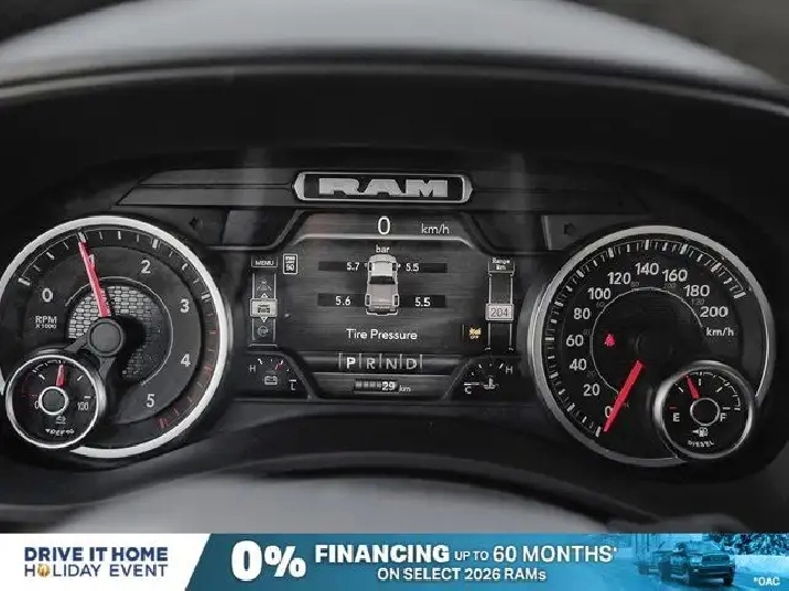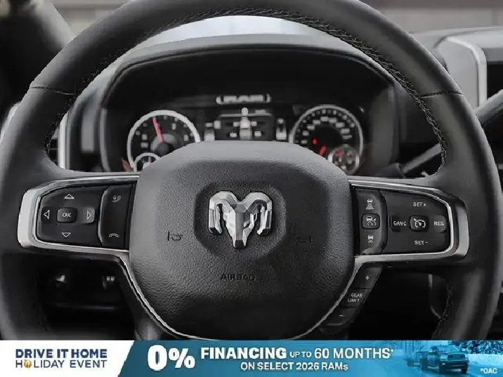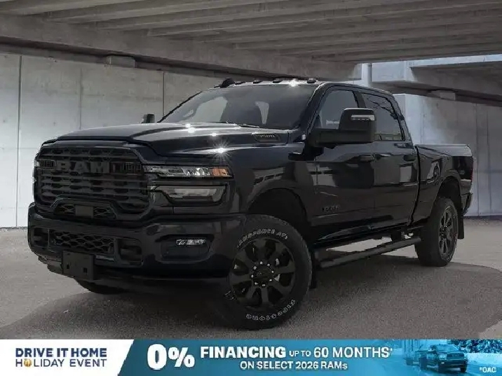 - REMOTE START SYSTEM,TIRES: LT285/60R20E OWL ON/OFF-ROAD,DUAL ALTERNATORS RATED AT 480 AMPS,MOPAR FRONT & REAR ALL-WEATHER FLOOR MATS,TRANSMISSION: 8-SPEED TORQUEFLITE AUTOMATIC -inc: 12 Single-Wheel Rear Axle,WHEELS: 20 X 8 BLACK ALUMINUM,NIGHT EDITION -inc: Gloss Black Nostrils/Black Grille Tires: LT285/60R20E OWL On/Off-Road Black Exterior Badging Wheels: 20 x 8 Black Aluminum Body-Colour Grille Surround Black Interior Accents Black Wheel Centre Hub Body-Colour Front Bumper Painted Rear Bumper,REAR WHEELHOUSE LINERS,CLEARANCE LAMPS,PAINTED FLAT WHEEL-TO-WHEEL SIDE STEPS,BLIND-SPOT/CROSS-PATH -inc: LED Taillamps Red Taillamp Bezels,GVWR: 5 352 KG (11 800 LBS),DIAMOND BLACK CRYSTAL PEARL,5TH WHEEL/GOOSENECK TOWING PREP GROUP,TRANSFER CASE SKID PLATE SHIELD,BLACK PREMIUM CLOTH FRONT BUCKET SEATS -inc: Bucket Seats Fold-Flat Load Floor w/Storage Power 8-Way Adjustable Driver Seat Rear 60/40 Split-Folding Bench Seat Front Seatback Map Pockets Power 2-Way Driver Lumbar Adjust Full-Length Upgraded Floor Console,ENGINE: 6.7L CUMMINS I-6 HO TURBO DIESEL -inc: Selective Catalytic Reduction (Urea) Dual 730-Amp Maintenance-Free Batteries Cummins Turbo Diesel Badge Heavy-Duty Engine Cooling Supplemental Heater 3.42 Axle Ratio MOPAR Winter Front Grille Cover GVWR: 5 352 kg (11 800 lbs) Current Generation Engine Controller Diesel Exhaust Brake Front Bumper Sight Shields Capless Fuel-Filler,QUICK ORDER PACKAGE 24Z -inc: Engine: 6.7L Cummins I-6 HO Turbo Diesel Transmission: 8-Speed TorqueFlite Automatic,BIG HORN LEVEL 2 PLUS EQUIPMENT GROUP -inc: Surround View Camera System Blind-Spot/Cross-Path LED Taillamps Red Taillamp Bezels Power Adjustable Pedals Emergency Vehicle Alert System (EVAS) 12 Touchscreen Display Glove Box Lamp Auto Power Folding Mirrors Footwell Courtesy Lamp 115-Volt Auxiliary Power Outlet - Rear Media Hub w/2 USB Charging Ports Drowsy Driver Detection Front Heated Seats MOPAR Deployable Bed Step 115V Auxiliary Power Outlet - Exterior Alexa Built-In Active Lane Management System Forward & Reverse Utility Lights Locking Lower Glove Box Remote Start System 9 Alpine Speakers w/Subwoofer Disassociated Touchscreen Display Dual Wireless Charging Pad Trailer Tire Pressure Monitoring Dual Glove Boxes 115-Volt Auxiliary Power Outlet - Front Universal Garage Door Opener Second Row In-Floor Storage Bins Sun Visors w/Illuminated Vanity Mirrors Radio: Uconnect 5 Nav w/12.0 Display Centre Stop Lamp w/Cargo Camera Rain-Sensing Windshield Wipers A,3.42 AXLE RATIO,RADIO: UCONNECT 5 NAV W/12.0 DISPLAY,Tow Hitch,Four Wheel Drive,Traction Control,Adaptive Cruise Control,Front Head Air Bag,Integrated Turn Signal Mirrors,Power Mirror(s),Tire Pressure Monitor,Power Door Locks,Daytime Running Lights,Rear Head Air Bag,Cloth Seats,Brake Assist,Passenger Air Bag,Bluetooth Connection,Keyless Entry,Automatic Headlights,MP3 Capability,Passenger Air Bag Sensor,Heated Mirrors,AM/FM Stereo,Power Windows,Front Side Air Bag,Bluetooth Connection,Rear Defrost,Passenger Illuminated Visor Mirror,Power Steering,Back-Up Camera,Power Door Locks,Variable Speed Intermittent Wipers,Requires Subscription,Front Collision Mitigation,Locking/Limited Slip Differential,Split Bench Seat,Tow Hooks,Smart Device Integration,Driver Air Bag,Floor Mats,Child Safety Locks,Trip Computer,Traction Control,Power Windows,Smart Device Integration,Aluminum Wheels,Keyless Start,Trip Computer,Satellite Radio,4-Wheel Disc Brakes,Fog Lamps,Intermittent Wipers,Conventional Spare Tire,ABS,Rear Bench Seat,Privacy Glass,Stability Control,MP3 Capability,Immobilizer,Power Door Locks,Adjustable Steering Wheel,Auxiliary Audio Input,Split Bench Seat,Passenger Vanity Mirror,LED Headlights,Cruise Control,WiFi Hotspot,Rear Parking Aid,A/C