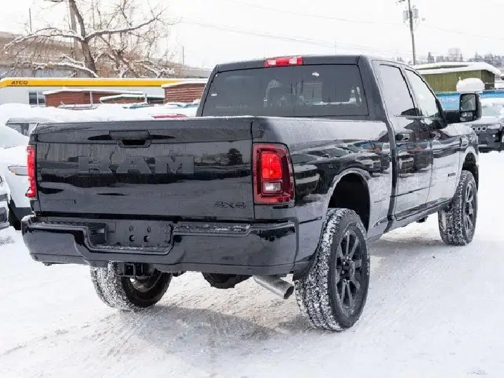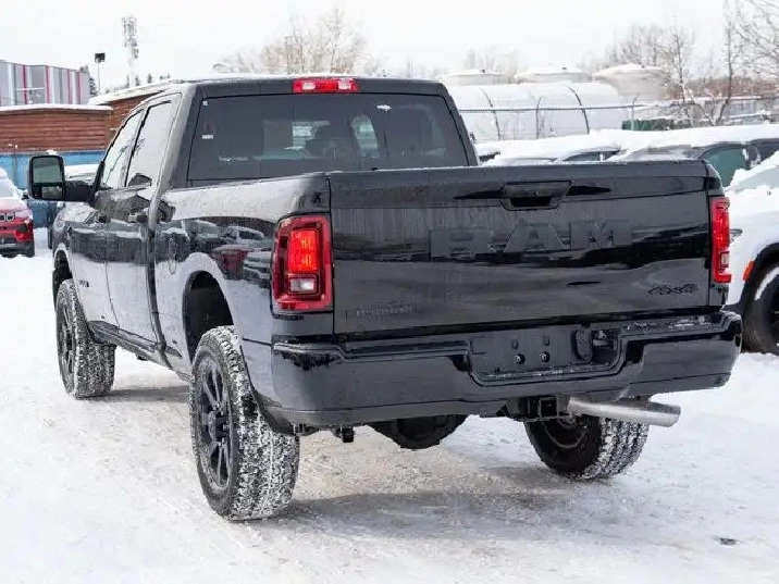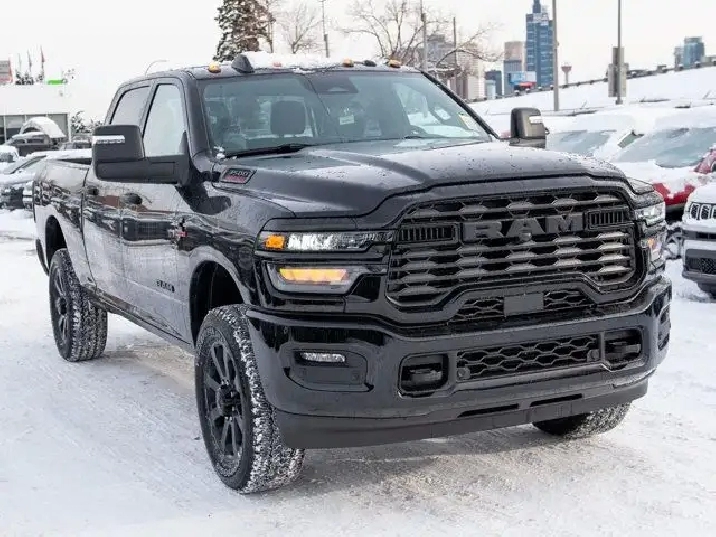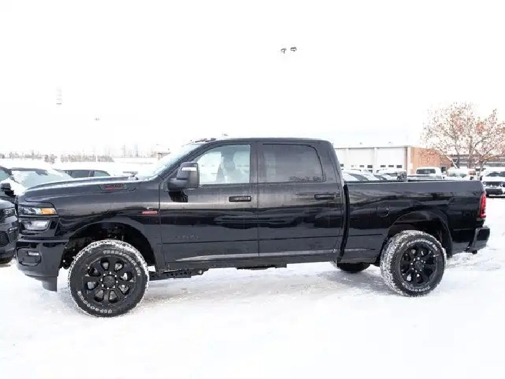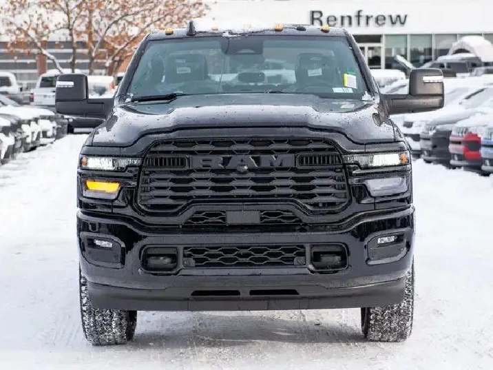 - REMOTE START SYSTEM,TIRES: LT285/60R20E OWL ON/OFF-ROAD,TRANSMISSION: 8-SPEED TORQUEFLITE AUTOMATIC -inc: 12 Single-Wheel Rear Axle,WHEELS: 20 X 8 BLACK ALUMINUM,NIGHT EDITION -inc: Gloss Black Nostrils/Black Grille Tires: LT285/60R20E OWL On/Off-Road Black Exterior Badging Wheels: 20 x 8 Black Aluminum Body-Colour Grille Surround Black Interior Accents Black Wheel Centre Hub Body-Colour Front Bumper Painted Rear Bumper,CLEARANCE LAMPS,GVWR: 5 352 KG (11 800 LBS),DIAMOND BLACK CRYSTAL PEARL,BLACK PREMIUM CLOTH FRONT BUCKET SEATS -inc: Bucket Seats Fold-Flat Load Floor w/Storage Power 8-Way Adjustable Driver Seat Rear 60/40 Split-Folding Bench Seat Front Seatback Map Pockets Power 2-Way Driver Lumbar Adjust Full-Length Upgraded Floor Console,ENGINE: 6.7L CUMMINS I-6 HO TURBO DIESEL -inc: Selective Catalytic Reduction (Urea) Dual 730-Amp Maintenance-Free Batteries Cummins Turbo Diesel Badge Heavy-Duty Engine Cooling Supplemental Heater 3.42 Axle Ratio MOPAR Winter Front Grille Cover GVWR: 5 352 kg (11 800 lbs) Current Generation Engine Controller Diesel Exhaust Brake Front Bumper Sight Shields Capless Fuel-Filler,QUICK ORDER PACKAGE 24Z -inc: Engine: 6.7L Cummins I-6 HO Turbo Diesel Transmission: 8-Speed TorqueFlite Automatic,3.42 AXLE RATIO,RADIO: UCONNECT 5 NAV W/12.0 DISPLAY,BIG HORN LEVEL 1 PLUS EQUIPMENT GROUP -inc: Emergency Vehicle Alert System (EVAS) 12 Touchscreen Display Glove Box Lamp Auto Power Folding Mirrors Footwell Courtesy Lamp MOPAR Deployable Bed Step Alexa Built-In Forward & Reverse Utility Lights Locking Lower Glove Box Remote Start System 9 Alpine Speakers w/Subwoofer Disassociated Touchscreen Display Dual Glove Boxes Second Row In-Floor Storage Bins Radio: Uconnect 5 Nav w/12.0 Display Auto-Dimming Rearview Mirror Rear Dome Lamp w/On/Off Switch LED Bed Lighting GPS Navigation SiriusXM w/360L On-Demand Content Connected Travel & Traffic Services Door Trim Panel Foam Bottle Insert Big Horn Instrument Panel Badge Off-Road Info Pages Trailer Tow Pages HD Radio Power Heated Folding Telescopic Mirrors Steering Wheel Mounted Audio Controls A/C w/Dual-Zone Auto Temperature Control MOPAR Spray-In Bedliner Luxury Steering Wheel Power Telescoping Mirrors,Tow Hitch,Four Wheel Drive,Traction Control,Adaptive Cruise Control,Front Head Air Bag,Integrated Turn Signal Mirrors,Power Mirror(s),Tire Pressure Monitor,Power Door Locks,Daytime Running Lights,Rear Head Air Bag,Cloth Seats,Brake Assist,Passenger Air Bag,Bluetooth Connection,Keyless Entry,Automatic Headlights,MP3 Capability,Passenger Air Bag Sensor,Heated Mirrors,AM/FM Stereo,Power Windows,Front Side Air Bag,Bluetooth Connection,Rear Defrost,Passenger Illuminated Visor Mirror,Power Steering,Back-Up Camera,Power Door Locks,Variable Speed Intermittent Wipers,Requires Subscription,Front Collision Mitigation,Locking/Limited Slip Differential,Split Bench Seat,Tow Hooks,Smart Device Integration,Driver Air Bag,Floor Mats,Child Safety Locks,Trip Computer,Traction Control,Power Windows,Smart Device Integration,Aluminum Wheels,Keyless Start,Trip Computer,Satellite Radio,4-Wheel Disc Brakes,Fog Lamps,Intermittent Wipers,Conventional Spare Tire,ABS,Rear Bench Seat,Privacy Glass,Stability Control,MP3 Capability,Immobilizer,Power Door Locks,Adjustable Steering Wheel,Auxiliary Audio Input,Split Bench Seat,Passenger Vanity Mirror,LED Headlights,Cruise Control,WiFi Hotspot,Rear Parking Aid,A/C