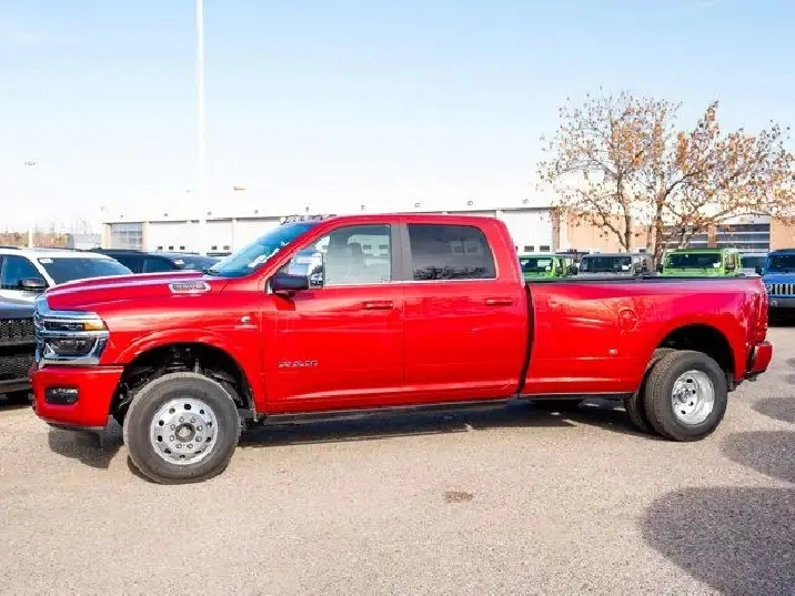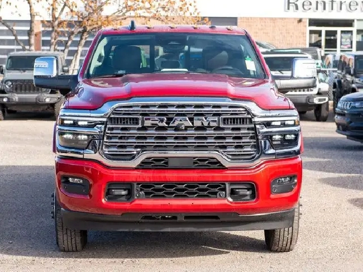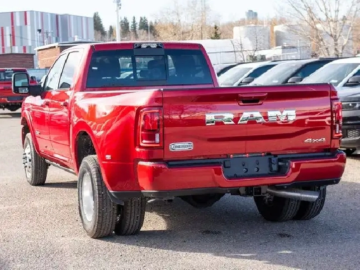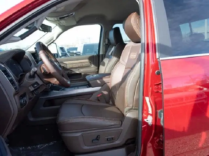 - GVWR: 6 350 KG (14 000 LBS),QUICK ORDER PACKAGE 24K LIMITED LONGHORN -inc: Engine: 6.7L Cummins I-6 HO Turbo Diesel Transmission: 8-Speed TorqueFlite Automatic Longhorn Instrument Cluster Premium Door Trim Panel Luxury Front & Rear Floor Mats Aluminum Lithograph IP Bezels w/Wood Warm Chrome Key Fob Longhorn Exterior Badge,DUAL ALTERNATORS RATED AT 480 AMPS,TRANSMISSION: 8-SPEED TORQUEFLITE AUTOMATIC,MOUNTAIN BROWN/BISON PREMIUM FILIGREE LEATHER-TRIMMED SEATS,ENGINE: 6.7L CUMMINS I-6 HO TURBO DIESEL -inc: Selective Catalytic Reduction (Urea) Dual 730-Amp Maintenance-Free Batteries Cummins Turbo Diesel Badge Heavy-Duty Engine Cooling Supplemental Heater 3.42 Axle Ratio GVWR: 5 579 kg (12 300 lbs) MOPAR Winter Front Grille Cover Current Generation Engine Controller Diesel Exhaust Brake Front Bumper Sight Shields Capless Fuel-Filler,REAR AUTO-LEVELLING AIR SUSPENSION,CLEARANCE LAMPS,DUAL REAR WHEELS -inc: Clearance Lamps Tires: LT235/80R17E BSW All-Season 17 Steel Spare Wheel Box & Rear Fender Clearance Lamps Centre Hub 2 721 kg (6 000 lb) Front Axle w/Hub Ext Wheels: 17 x 6 Polished Aluminum GVWR: 6 350 kg (14 000 lbs),5TH WHEEL/GOOSENECK TOWING PREP GROUP,LONGHORN LEVEL 1 EQUIPMENT GROUP -inc: Active Lane Management System Centre Stop Lamp w/Cargo Camera Surround View Camera System LED Bed Lighting Power Deployable Running Boards Traffic Sign Recognition Trailer Tire Pressure Monitoring Adaptive Steering System MOPAR Spray-In Bedliner Drowsy Driver Detection Trailer Reverse Guidance Digital Rearview Mirror,TIRES: LT235/80R17E BSW ALL-SEASON,WHEELS: 17 X 6 POLISHED ALUMINUM,MOLTEN RED PEARL,3.42 AXLE RATIO,30K DIRECT MOUNT 5TH WHEEL HITCH,Remote Engine Start,Tires - Rear All-Terrain,AM/FM Stereo,Power Steering,Tires - Front All-Terrain,HD Radio,Bluetooth Connection,Tow Hitch,Tow Hooks,Power Mirror(s),Rain Sensing Wipers,4-Wheel Disc Brakes,Satellite Radio,Heated Mirrors,Variable Speed Intermittent Wipers,Four Wheel Drive,LED Headlights,Power Door Locks,Requires Subscription,Intermittent Wipers,Locking/Limited Slip Differential,Power Folding Mirrors,ABS,Automatic Headlights,Integrated Turn Signal Mirrors,Automatic Highbeams,Navigation System,Running Boards/Side Steps,Fog Lamps,Brake Assist,Privacy Glass,Aluminum Wheels,Daytime Running Lights,Rear Defrost,Conventional Spare Tire,A/C,Universal Garage Door Opener,Smart Device Integration,Adaptive Cruise Control,Power Door Locks,Steering Wheel Audio Controls,Power Door Locks,Auxiliary Audio Input,Keyless Entry,Keyless Start,Driver Vanity Mirror,Auto-Dimming Rearview Mirror,Passenger Illuminated Visor Mirror,Multi-Zone A/C,MP3 Capability,Premium Sound System,Climate Control,Cruise Control,Passenger Vanity Mirror,Keyless Entry,Requires Subscription,Premium Sound System,Driver Illuminated Vanity Mirror,Mirror Memory,Child Safety Locks,Smart Device Integration,Driver Air Bag,Trip Computer,WiFi Hotspot,Traction Control,Back-Up Camera,Power Door Locks,Leather Steering Wheel,Seat Memory,Front Side Air Bag,Front Collision Mitigation,Blind Spot Monitor,Adjustable Steering Wheel,Rear Head Air Bag,Passenger Air Bag Sensor,Immobilizer,Driver Adjustable Lumbar,Cross-Traffic Alert,Front Head Air Bag,Stability Control,Trip Computer,Navigation System,Power Windows,Security System,Keyless Start,Bluetooth Connection,Heated Front Seat(s),Pass-Through Rear Seat,Power Passenger Seat,Cooled Front Seat(s),Rear Bench Seat,Passenger Air Bag,Heated Rear Seat(s),Traction Control,Rear Parking Aid,Power Windows,Adjustable Pedals,Remote Engine Start,Power Driver Seat,Heated Front Seat(s),Tire Pressure Monitor,Heated Steering Wheel,Passenger Adjustable Lumbar