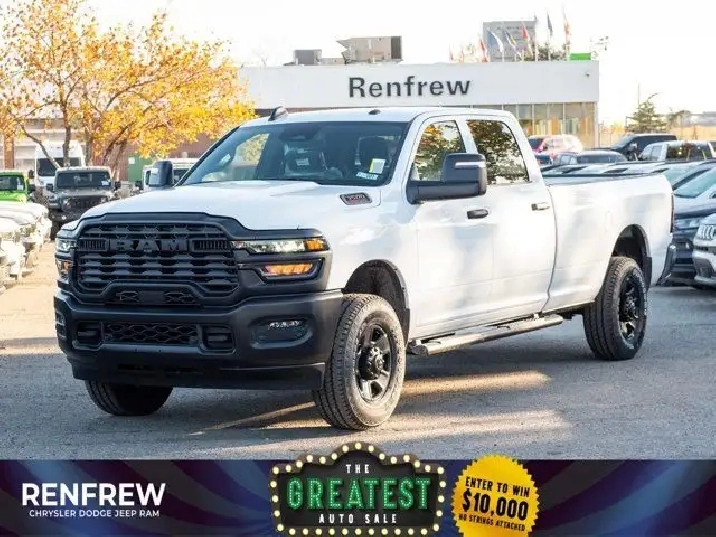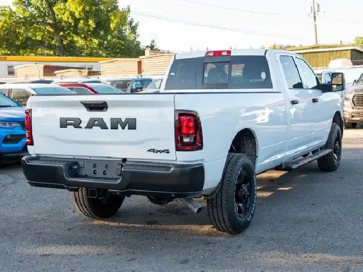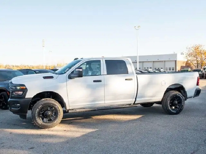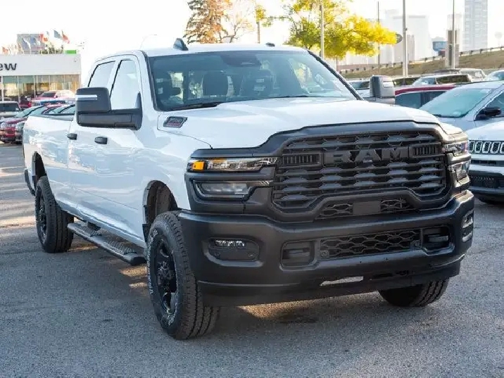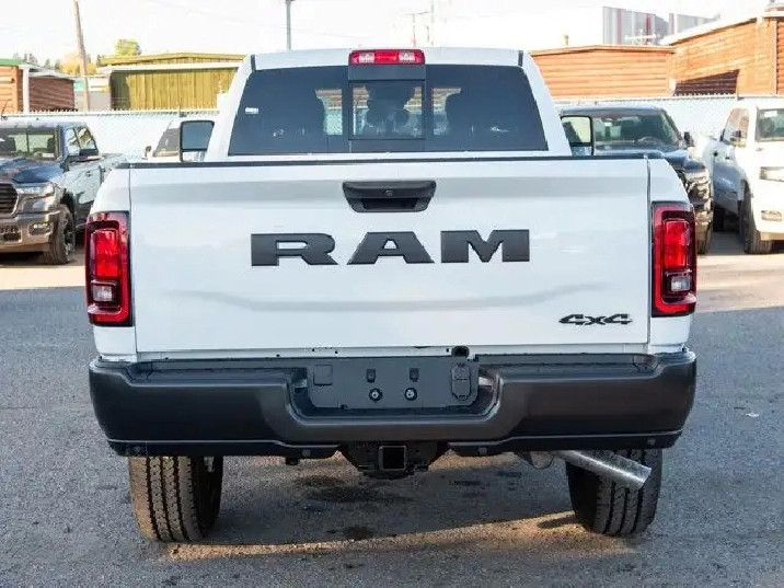 - 189-LITRE (50-GALLON) FUEL TANK,QUICK ORDER PACKAGE 2UA -inc: Engine: 6.4L V8 HEMI HD Transmission: 8-Speed Automatic,GVWR: 5 189 KG (11 440 LBS) (STD),BLACK CLOTH FRONT 40/20/40 BENCH SEAT,BRIGHT WHITE,ENGINE: 6.4L V8 HEMI HD (STD),BLACK MOPAR TUBULAR SIDE STEPS,TRANSMISSION: 8-SPEED AUTOMATIC (STD),TIRES: LT275/70R18E OWL ON/OFF-ROAD,5TH WHEEL/GOOSENECK TOWING PREP GROUP,3.73 REAR AXLE RATIO (STD),WHEELS: 18 X 8 STEEL BLACK PAINTED (STD),RADIO: UCONNECT 5 NAV W/12.0 DISPLAY,DELETE CARPET,TRADESMAN LEVEL 1 EQUIPMENT GROUP -inc: Convenience Group Radio: Uconnect 5 Nav w/12.0 Display Auto-Dimming Rearview Mirror Rear Power Sliding Window Emergency Vehicle Alert System (EVAS) 12 Touchscreen Display Tinted Acoustic Windshield GPS Navigation Black MOPAR Tubular Side Steps Heated Exterior Mirrors SiriusXM w/360L On-Demand Content Connected Travel & Traffic Services Mirror Running Lights Alexa Built-In Carpet Floor Covering Power Convex Aux Exterior Mirrors Off-Road Info Pages Trailer Tow Pages 400-Watt Inverter Disassociated Touchscreen Display Power Fold Heated Telescopic Mirrors HD Radio Exterior Mirrors w/Turn Signals Exterior Mirrors w/Courtesy Lamps A/C w/Dual-Zone Auto Temperature Control 115-Volt Auxiliary Power Outlet - Front Power Adjust Mirrors Front & Rear Floor Mats Park-Sense Front & Rear Park Assist,Tow Hitch,Four Wheel Drive,MP3 Capability,4-Wheel Disc Brakes,Daytime Running Lights,Auxiliary Audio Input,Privacy Glass,AM/FM Stereo,Steel Wheels,Locking/Limited Slip Differential,Tow Hooks,Intermittent Wipers,Bluetooth Connection,Fog Lamps,LED Headlights,Rear Defrost,ABS,Variable Speed Intermittent Wipers,Conventional Spare Tire,Power Steering,Brake Assist,Automatic Headlights,Power Door Locks,Passenger Vanity Mirror,Keyless Start,Power Door Locks,Adaptive Cruise Control,Keyless Entry,A/C,Split Bench Seat,Vinyl Seats,Cruise Control,Satellite Radio,Requires Subscription,Stability Control,Passenger Air Bag,Front Head Air Bag,Child Safety Locks,Smart Device Integration,Passenger Air Bag Sensor,Front Collision Mitigation,WiFi Hotspot,Back-Up Camera,Rear Head Air Bag,Smart Device Integration,Power Windows,Traction Control,Front Side Air Bag,Driver Air Bag,Adjustable Steering Wheel,MP3 Capability,Split Bench Seat,Immobilizer,Traction Control,Bluetooth Connection,Power Windows,Tire Pressure Monitor,Power Door Locks,Rear Bench Seat