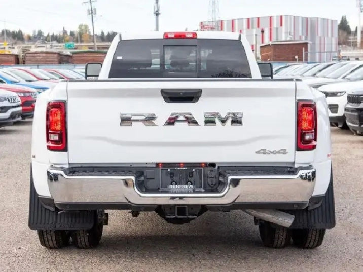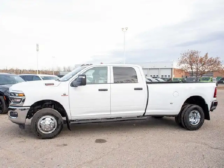 - GVWR: 6 350 KG (14 000 LBS),BED UTILITY GROUP -inc: MOPAR Spray-In Bedliner LED Bed Lighting MOPAR Deployable Bed Step,189-LITRE (50-GALLON) FUEL TANK,BLACK CLOTH FRONT 40/20/40 BENCH SEAT,TRANSMISSION: 8-SPEED TORQUEFLITE AUTOMATIC,IP-MOUNTED AUXILIARY SWITCHES -inc: Dash Pass Thru Wire Circuits,BRIGHT WHITE,MOPAR FRONT & REAR ALL-WEATHER FLOOR MATS,QUICK ORDER PACKAGE 24A -inc: Engine: 6.7L Cummins I-6 HO Turbo Diesel Transmission: 8-Speed TorqueFlite Automatic,REAR WHEELHOUSE LINERS,TRADESMAN LEVEL 2A EQUIPMENT GROUP -inc: Convenience Group Emergency Vehicle Alert System (EVAS) 12 Touchscreen Display Mirror Running Lights Alexa Built-In Power Convex Aux Exterior Mirrors Disassociated Touchscreen Display Bright Wheel Covers Matte Black Mesh/Bright Grille 115-Volt Auxiliary Power Outlet - Front Centre Hub Radio: Uconnect 5 Nav w/12.0 Display Auto-Dimming Rearview Mirror Rear Power Sliding Window Tinted Acoustic Windshield GPS Navigation Bright Rear Bumper Black MOPAR Tubular Side Steps Bright Grille Surround Heated Exterior Mirrors SiriusXM w/360L On-Demand Content Connected Travel & Traffic Services Carpet Floor Covering Off-Road Info Pages Trailer Tow Pages 400-Watt Inverter HD Radio Power Fold Heated Telescopic Mirrors Exterior Mirrors w/Turn Signals Exterior Mirrors w/Courtesy Lamps A/C w/Dual-Zone Auto Temperature Control Power Adjust Mirrors Front & Rear Floor Mats Bright Front Bumper Park-Sense Front & Rear Park Assist,BLACK MOPAR TUBULAR SIDE STEPS,DUAL REAR WHEELS -inc: Clearance Lamps Tires: LT235/80R17E BSW All-Season 17 Steel Spare Wheel Box & Rear Fender Clearance Lamps 2 721 kg (6 000 lb) Front Axle w/Hub Ext Wheels: 17 x 6 Black Steel Black Wheel Centre Hub GVWR: 6 350 kg (14 000 lbs) Rear Wheelhouse Liners,ENGINE: 6.7L CUMMINS I-6 HO TURBO DIESEL -inc: Selective Catalytic Reduction (Urea) Dual 730-Amp Maintenance-Free Batteries Cummins Turbo Diesel Badge Heavy-Duty Engine Cooling Supplemental Heater 3.42 Axle Ratio GVWR: 5 579 kg (12 300 lbs) MOPAR Winter Front Grille Cover Current Generation Engine Controller Diesel Exhaust Brake Front Bumper Sight Shields Capless Fuel-Filler,CLEARANCE LAMPS,5TH WHEEL/GOOSENECK TOWING PREP GROUP,TIRES: LT235/80R17E BSW ALL-SEASON,TRANSFER CASE SKID PLATE SHIELD,WHEELS: 17 X 6 CHROME-CLAD STEEL,3.42 AXLE RATIO,RADIO: UCONNECT 5 NAV W/12.0 DISPLAY,Tow Hitch,Four Wheel Drive,MP3 Capability,4-Wheel Disc Brakes,Daytime Running Lights,Auxiliary Audio Input,Privacy Glass,AM/FM Stereo,Steel Wheels,Locking/Limited Slip Differential,Tow Hooks,Intermittent Wipers,Bluetooth Connection,Fog Lamps,LED Headlights,Rear Defrost,ABS,Variable Speed Intermittent Wipers,Conventional Spare Tire,Power Steering,Brake Assist,Automatic Headlights,Power Door Locks,Passenger Vanity Mirror,Keyless Start,Power Door Locks,Adaptive Cruise Control,Keyless Entry,A/C,Split Bench Seat,Vinyl Seats,Cruise Control,Satellite Radio,Requires Subscription,Stability Control,Passenger Air Bag,Front Head Air Bag,Child Safety Locks,Smart Device Integration,Passenger Air Bag Sensor,Front Collision Mitigation,WiFi Hotspot,Back-Up Camera,Rear Head Air Bag,Smart Device Integration,Power Windows,Traction Control,Front Side Air Bag,Driver Air Bag,Adjustable Steering Wheel,MP3 Capability,Split Bench Seat,Immobilizer,Traction Control,Bluetooth Connection,Power Windows,Tire Pressure Monitor,Power Door Locks,Rear Bench Seat