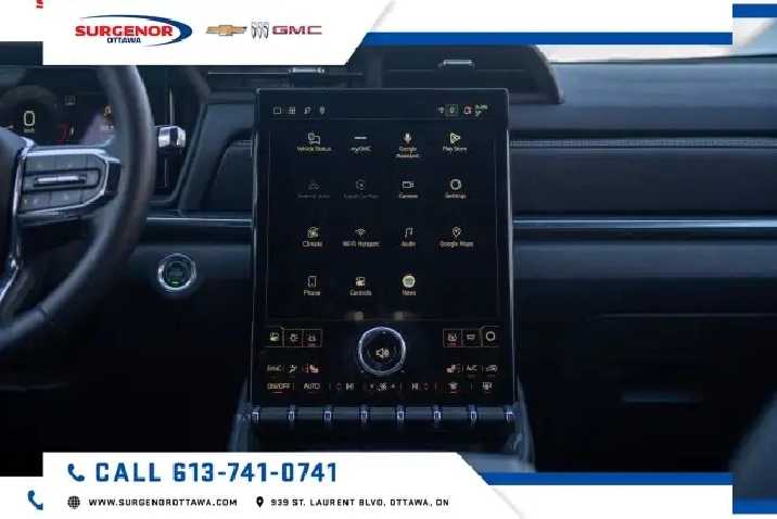• 15" diagonal Premium GMC Infotainment System high contrast display with Google Built-In compatibility including navigation capability, colour touch-screen, multi-touch display, connected apps, personalized for each driver's settings, Natural Voice Recognition and Phone Integration for Wireless Apple CarPlay/Wireless Android Auto for compatible phones
