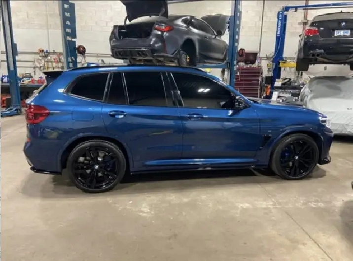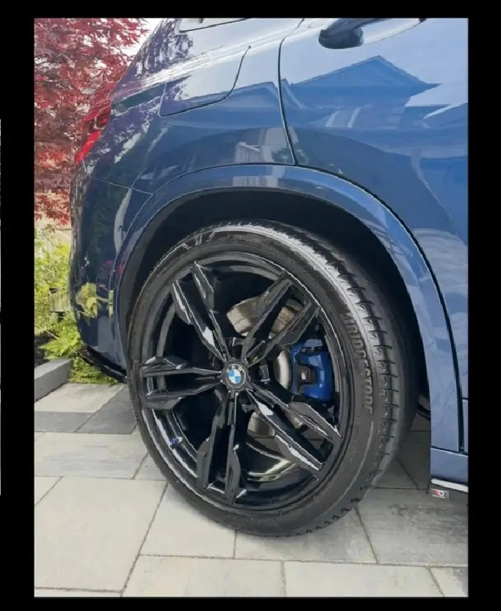 Exterior cosmetics, full skirt package including rear spoiler BMW M side mirrors BMW M black front grill with 21 inch OEM BMW powder coated black rims with Bridgestone summer tires. Ceramic tints all around including front windshield. All stock parts come with the vehicle aswell.