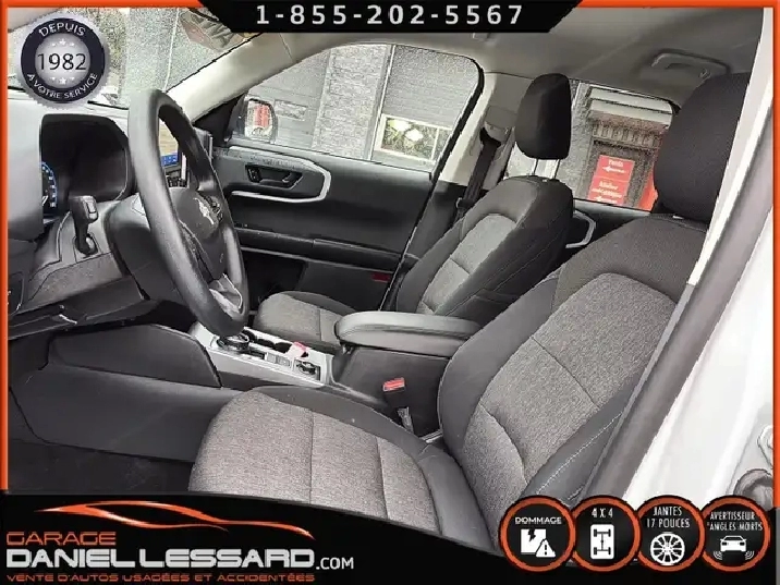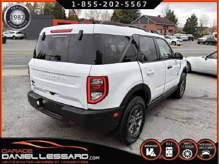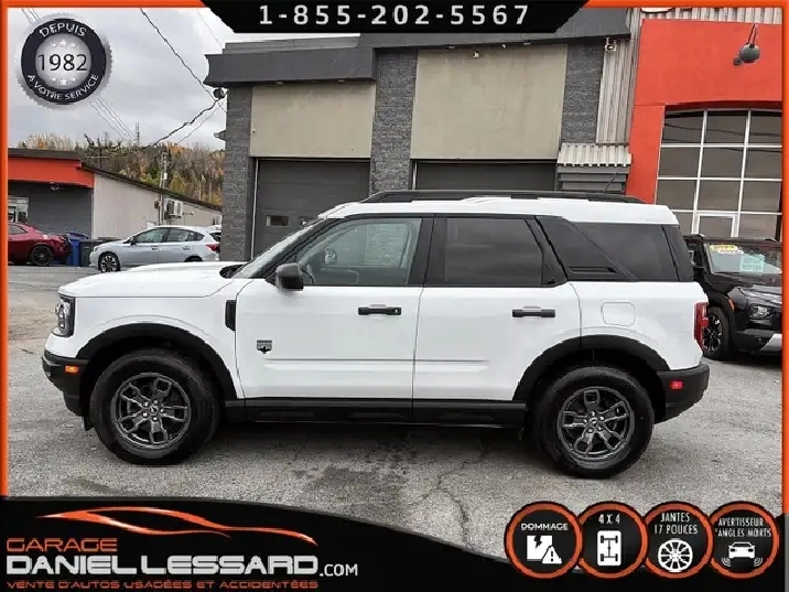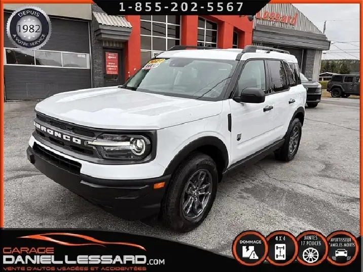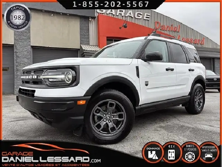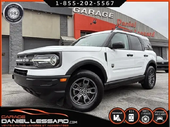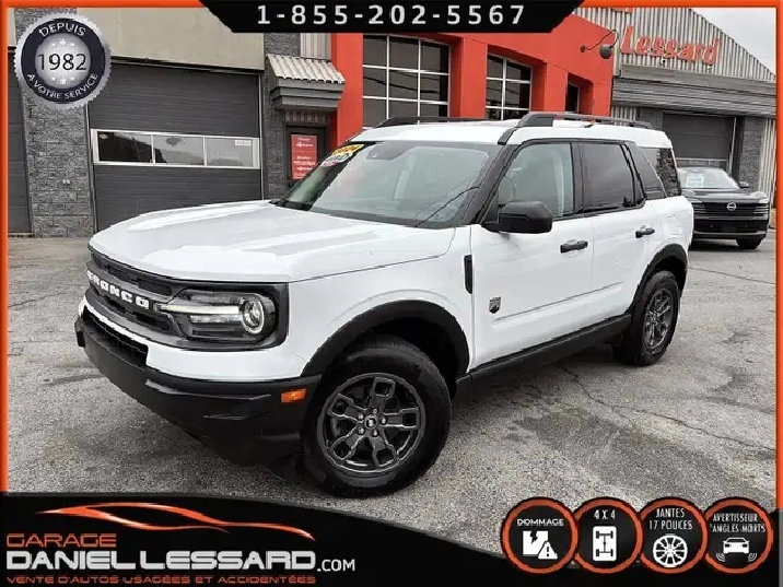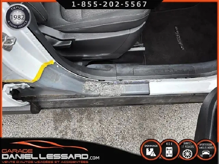 BIG BEND 4X4, ANGLE MORT, CAM RECUL, SIEGE CHAUFFANT, ACCIDENTÉ VGA COTE DROIT POUR BEAUCOUP PLUS DE PHOTOS ET DÉTAILS DIRECTEMENT SUR NOTRE SITE INTERNET OFFICIEL AU WWW.DANIELLESSARD.COM, VOIR ÉGALEMENT VIDÉO DISPONIBLE DANS L'ANNONCE SUPERBE FORD BRONCO SPORT EDITION BIG BEND DE COULEUR BLANC AVEC SEULEMENT 17491KM, 4X4, MOTEUR 1.5 LITRES ECOBOOST, TRANSMISSION AUTOMATIQUE 8 VITESSES, GOAT MODE, MAG 17" SUR PNEUS CONTINENTAL PROCONTACT 225/65/17, AIR CLIMATISÉ, CRUISE CONTRÔLE, SIÈGE CHAUFFANT, ÉCRAN TACTILE AVEC SYNC 3, BLUETOOTH, APPLE CARPLAY, ANDROID AUTO, SYSTEM ALERTE DE VOUVOIEMENT ET CAPTEUR D'ANGLE MORT, CAMÉRA DE RECUL, NOUS AVONS 1CLÉ SEULEMENT. VÉHICULE VGA PROVIENT DU NL, BALLON OK, CEINTURES OK, POUR LES RÉPARATIONS À FAIRE: NOUS AVONS REMPLACER LES 2 PORTES DROITES, FILAGE DE LA PORTE ET POIGNÉ ANTÉRIEUR DANS LA VALISE A REMPLACER DANS LA NOUVEL PORTE, LA TÔLE DU PILIER B POTEAUX DE CENTRE ET DE LA SOL DROITE A ÉTÉ COUPER PAR L’ASSURANCE A REMPLACER. BIEN REGARDER LES IMAGES CONTACTEZ L’UN DE NOS CONSEILLERS QUALIFIÉS POUR PLUS DE DÉTAILS ! PLUSIEURS VÉHICULES DE TOUTES MARQUES DISPONIBLES AU WWW.DANIELLESSARD.COM, LA PLACE POUR MAGASINER VOTRE VÉHICULE JAMAIS ACCIDENTÉ, RÉPARÉ OU ENDOMMAGÉ. PLUS DE 100 VÉHICULES DISPONIBLES. ARRIVAGES QUOTIDIENS !!! FINANCEMENT ET GARANTIE PROLONGÉE DISPONIBLES ! NOUS REPRENONS LES ÉCHANGES. NOUS AVONS UN LARGE RÉSEAU DE CARROSSIERS EXPERTS À VOTRE DISPOSITION POUR VOTRE SERVICE DE RÉPARATION CLÉ EN MAIN. NOS VÉHICULES PRÊTS À PARTIR SONT INSPECTÉS AU COMPLET PAR NOUS ET LA SAAQ, VENDUS AVEC GARANTIE. NOUS SOMMES OUVERTS DU LUNDI AU VENDREDI 8:00 À 17:00 ET LE SAMEDI AU 9:00 À 12:00. VISITEZ NOTRE PAGE FACEBOOK ! AU PLAISIR DE VOUS RENCONTRER. À VOTRE SERVICE DEPUIS 1982 POUR BEAUCOUP PLUS DE PHOTOS ET DÉTAILS DIRECTEMENT SUR NOTRE SITE INTERNET OFFICIEL AU WWW.DANIELLESSARD.COM, VOIR ÉGALEMENT VIDÉO DISPONIBLE DANS L'ANNONCE SUPERBE FORD BRONCO SPORT EDITION BIG BEND DE COULEUR BLANC AVEC SEULEMENT 17491KM, 4X4, MOTEUR 1.5 LITRES ECOBOOST, TRANSMISSION AUTOMATIQUE 8 VITESSES, GOAT MODE, MAG 17" SUR PNEUS CONTINENTAL PROCONTACT 225/65/17, AIR CLIMATISÉ, CRUISE CONTRÔLE, SIÈGE CHAUFFANT, ÉCRAN TACTILE AVEC SYNC 3, BLUETOOTH, APPLE CARPLAY, ANDROID AUTO, SYSTEM ALERTE DE VOUVOIEMENT ET CAPTEUR D'ANGLE MORT, CAMÉRA DE RECUL, NOUS AVONS 1CLÉ SEULEMENT. VÉHICULE VGA PROVIENT DU NL, BALLON OK, CEINTURES OK, POUR LES RÉPARATIONS À FAIRE: NOUS AVONS REMPLACER LES 2 PORTES DROITES, FILAGE DE LA PORTE ET POIGNÉ ANTÉRIEUR DANS LA VALISE A REMPLACER DANS LA NOUVEL PORTE, LA TÔLE DU PILIER B POTEAUX DE CENTRE ET DE LA SOL DROITE A ÉTÉ COUPER PAR L’ASSURANCE A REMPLACER. BIEN REGARDER LES IMAGES CONTACTEZ L’UN DE NOS CONSEILLERS QUALIFIÉS POUR PLUS DE DÉTAILS ! PLUSIEURS VÉHICULES DE TOUTES MARQUES DISPONIBLES AU WWW.DANIELLESSARD.COM, LA PLACE POUR MAGASINER VOTRE VÉHICULE JAMAIS ACCIDENTÉ, RÉPARÉ OU ENDOMMAGÉ. PLUS DE 100 VÉHICULES DISPONIBLES. ARRIVAGES QUOTIDIENS !!! FINANCEMENT ET GARANTIE PROLONGÉE DISPONIBLES ! NOUS REPRENONS LES ÉCHANGES. NOUS AVONS UN LARGE RÉSEAU DE CARROSSIERS EXPERTS À VOTRE DISPOSITION POUR VOTRE SERVICE DE RÉPARATION CLÉ EN MAIN. NOS VÉHICULES PRÊTS À PARTIR SONT INSPECTÉS AU COMPLET PAR NOUS ET LA SAAQ, VENDUS AVEC GARANTIE. NOUS SOMMES OUVERTS DU LUNDI AU VENDREDI 8:00 À 17:00 ET LE SAMEDI AU 9:00 À 12:00. VISITEZ NOTRE PAGE FACEBOOK ! AU PLAISIR DE VOUS RENCONTRER. À VOTRE SERVICE DEPUIS 1982