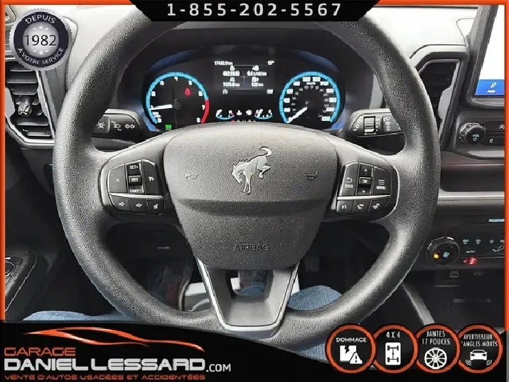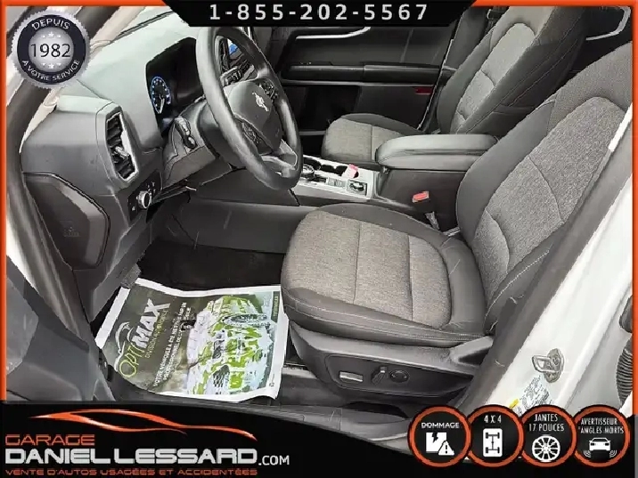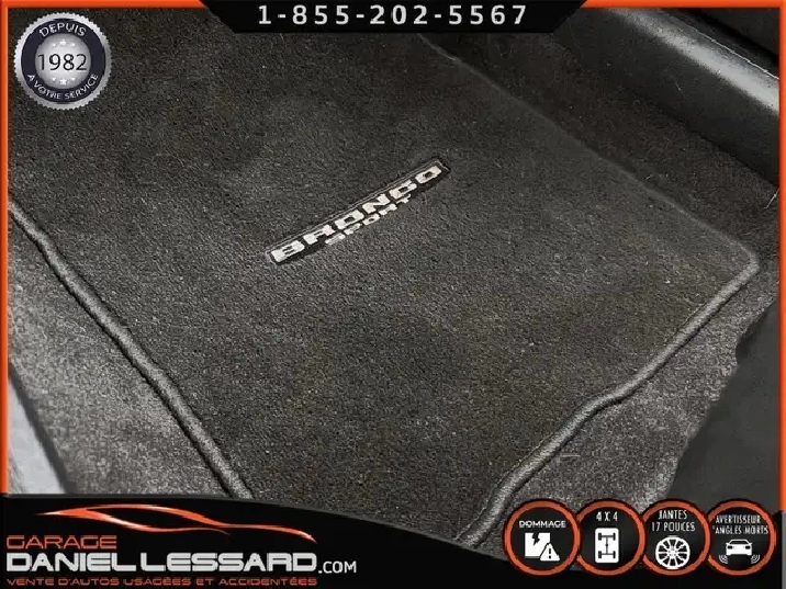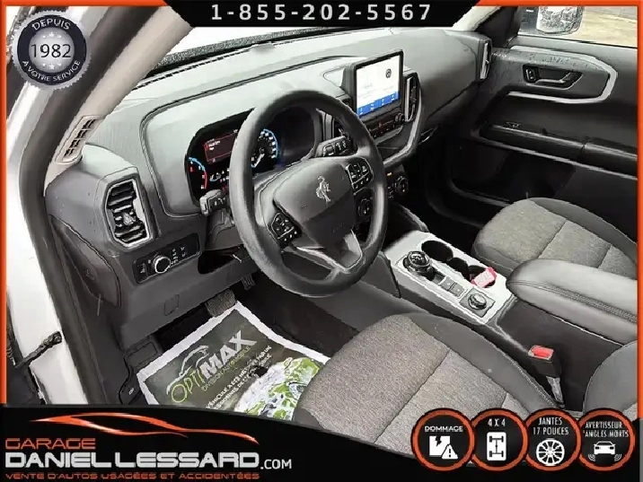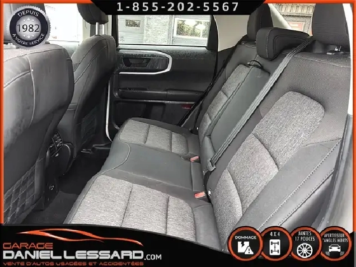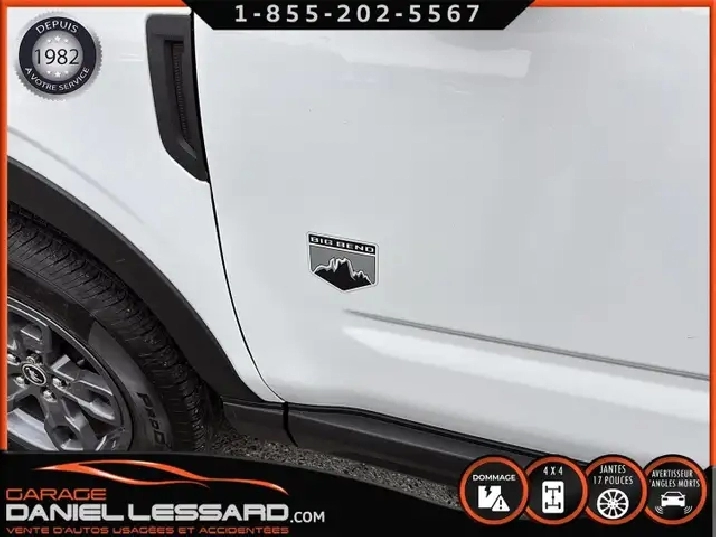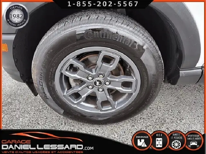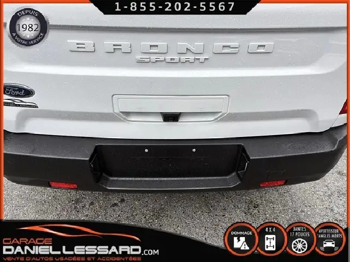 BIG BEND 4X4, ANGLE MORT, CAM RECUL, SIEGE CHAUFFANT, ACCIDENTÉ VGA COTE DROIT POUR BEAUCOUP PLUS DE PHOTOS ET DÉTAILS DIRECTEMENT SUR NOTRE SITE INTERNET OFFICIEL AU WWW.DANIELLESSARD.COM, VOIR ÉGALEMENT VIDÉO DISPONIBLE DANS L'ANNONCE SUPERBE FORD BRONCO SPORT EDITION BIG BEND DE COULEUR BLANC AVEC SEULEMENT 17491KM, 4X4, MOTEUR 1.5 LITRES ECOBOOST, TRANSMISSION AUTOMATIQUE 8 VITESSES, GOAT MODE, MAG 17" SUR PNEUS CONTINENTAL PROCONTACT 225/65/17, AIR CLIMATISÉ, CRUISE CONTRÔLE, SIÈGE CHAUFFANT, ÉCRAN TACTILE AVEC SYNC 3, BLUETOOTH, APPLE CARPLAY, ANDROID AUTO, SYSTEM ALERTE DE VOUVOIEMENT ET CAPTEUR D'ANGLE MORT, CAMÉRA DE RECUL, NOUS AVONS 1CLÉ SEULEMENT. VÉHICULE VGA PROVIENT DU NL, BALLON OK, CEINTURES OK, POUR LES RÉPARATIONS À FAIRE: NOUS AVONS REMPLACER LES 2 PORTES DROITES, FILAGE DE LA PORTE ET POIGNÉ ANTÉRIEUR DANS LA VALISE A REMPLACER DANS LA NOUVEL PORTE, LA TÔLE DU PILIER B POTEAUX DE CENTRE ET DE LA SOL DROITE A ÉTÉ COUPER PAR L’ASSURANCE A REMPLACER. BIEN REGARDER LES IMAGES CONTACTEZ L’UN DE NOS CONSEILLERS QUALIFIÉS POUR PLUS DE DÉTAILS ! PLUSIEURS VÉHICULES DE TOUTES MARQUES DISPONIBLES AU WWW.DANIELLESSARD.COM, LA PLACE POUR MAGASINER VOTRE VÉHICULE JAMAIS ACCIDENTÉ, RÉPARÉ OU ENDOMMAGÉ. PLUS DE 100 VÉHICULES DISPONIBLES. ARRIVAGES QUOTIDIENS !!! FINANCEMENT ET GARANTIE PROLONGÉE DISPONIBLES ! NOUS REPRENONS LES ÉCHANGES. NOUS AVONS UN LARGE RÉSEAU DE CARROSSIERS EXPERTS À VOTRE DISPOSITION POUR VOTRE SERVICE DE RÉPARATION CLÉ EN MAIN. NOS VÉHICULES PRÊTS À PARTIR SONT INSPECTÉS AU COMPLET PAR NOUS ET LA SAAQ, VENDUS AVEC GARANTIE. NOUS SOMMES OUVERTS DU LUNDI AU VENDREDI 8:00 À 17:00 ET LE SAMEDI AU 9:00 À 12:00. VISITEZ NOTRE PAGE FACEBOOK ! AU PLAISIR DE VOUS RENCONTRER. À VOTRE SERVICE DEPUIS 1982 POUR BEAUCOUP PLUS DE PHOTOS ET DÉTAILS DIRECTEMENT SUR NOTRE SITE INTERNET OFFICIEL AU WWW.DANIELLESSARD.COM, VOIR ÉGALEMENT VIDÉO DISPONIBLE DANS L'ANNONCE SUPERBE FORD BRONCO SPORT EDITION BIG BEND DE COULEUR BLANC AVEC SEULEMENT 17491KM, 4X4, MOTEUR 1.5 LITRES ECOBOOST, TRANSMISSION AUTOMATIQUE 8 VITESSES, GOAT MODE, MAG 17" SUR PNEUS CONTINENTAL PROCONTACT 225/65/17, AIR CLIMATISÉ, CRUISE CONTRÔLE, SIÈGE CHAUFFANT, ÉCRAN TACTILE AVEC SYNC 3, BLUETOOTH, APPLE CARPLAY, ANDROID AUTO, SYSTEM ALERTE DE VOUVOIEMENT ET CAPTEUR D'ANGLE MORT, CAMÉRA DE RECUL, NOUS AVONS 1CLÉ SEULEMENT. VÉHICULE VGA PROVIENT DU NL, BALLON OK, CEINTURES OK, POUR LES RÉPARATIONS À FAIRE: NOUS AVONS REMPLACER LES 2 PORTES DROITES, FILAGE DE LA PORTE ET POIGNÉ ANTÉRIEUR DANS LA VALISE A REMPLACER DANS LA NOUVEL PORTE, LA TÔLE DU PILIER B POTEAUX DE CENTRE ET DE LA SOL DROITE A ÉTÉ COUPER PAR L’ASSURANCE A REMPLACER. BIEN REGARDER LES IMAGES CONTACTEZ L’UN DE NOS CONSEILLERS QUALIFIÉS POUR PLUS DE DÉTAILS ! PLUSIEURS VÉHICULES DE TOUTES MARQUES DISPONIBLES AU WWW.DANIELLESSARD.COM, LA PLACE POUR MAGASINER VOTRE VÉHICULE JAMAIS ACCIDENTÉ, RÉPARÉ OU ENDOMMAGÉ. PLUS DE 100 VÉHICULES DISPONIBLES. ARRIVAGES QUOTIDIENS !!! FINANCEMENT ET GARANTIE PROLONGÉE DISPONIBLES ! NOUS REPRENONS LES ÉCHANGES. NOUS AVONS UN LARGE RÉSEAU DE CARROSSIERS EXPERTS À VOTRE DISPOSITION POUR VOTRE SERVICE DE RÉPARATION CLÉ EN MAIN. NOS VÉHICULES PRÊTS À PARTIR SONT INSPECTÉS AU COMPLET PAR NOUS ET LA SAAQ, VENDUS AVEC GARANTIE. NOUS SOMMES OUVERTS DU LUNDI AU VENDREDI 8:00 À 17:00 ET LE SAMEDI AU 9:00 À 12:00. VISITEZ NOTRE PAGE FACEBOOK ! AU PLAISIR DE VOUS RENCONTRER. À VOTRE SERVICE DEPUIS 1982