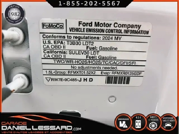 - Moteur : EcoBoost de 1,5 L -comprend : technologie d'arrêt au ralenti