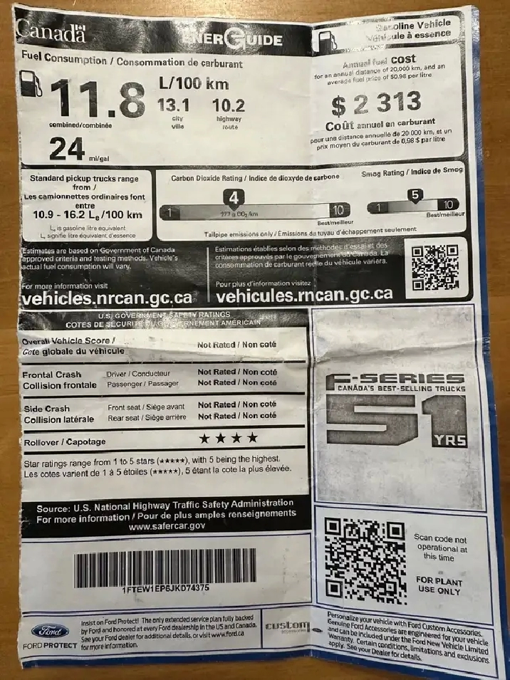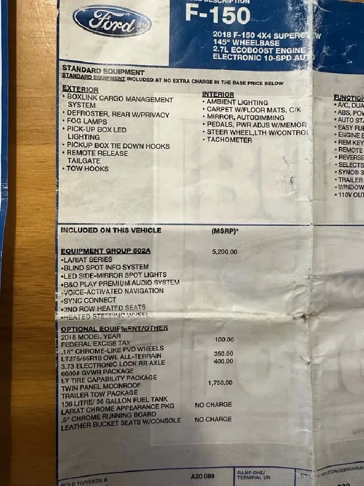 Camion F150 Lariat 2018 4x4 supercrew 2.7L ecoboost donc très économique