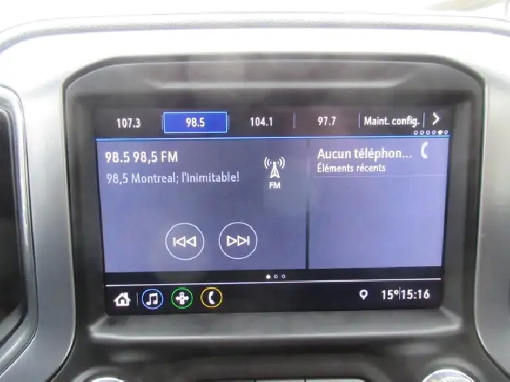 - Chaîne audio, système d'infodivertissement GMC avec écran tactile couleur de 8 po de diagonale, AM/FM stéréo avec recherche et balayage, et montre numérique, comprend lecture audio en continu Bluetooth pour musique et certains téléphones; capacités Android Auto et Apple CarPlay pour téléphone compatible