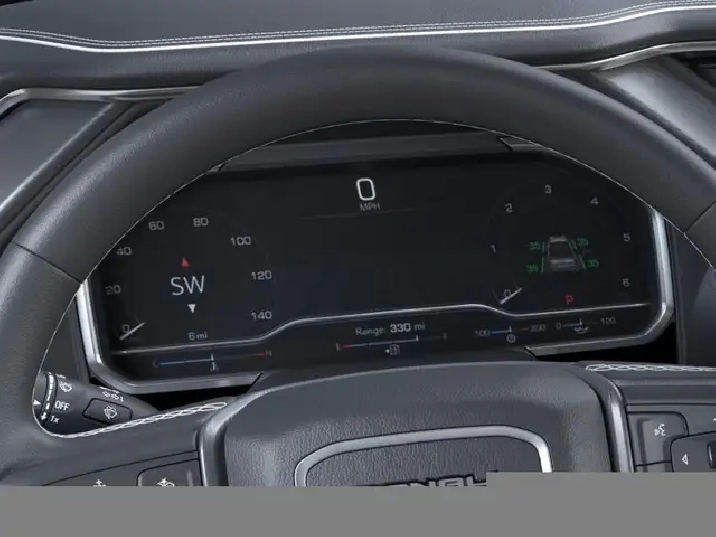 - Indicateur de distance avec le véhicule à l'avant (Inclus et livrable uniquement avec groupe sécurité pro Sierra HD (PDI).)