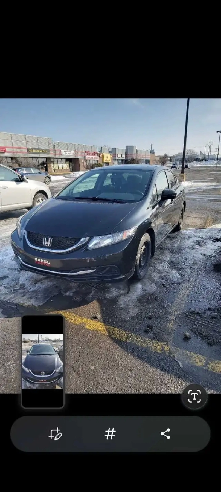 Selling my Honda civic EX 2014 in excellent condition very reliable and fuel economy comes with sunroof,monitor display, starter, original mags on summer tires, overall very good car 438-990-8329