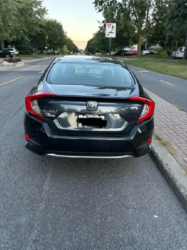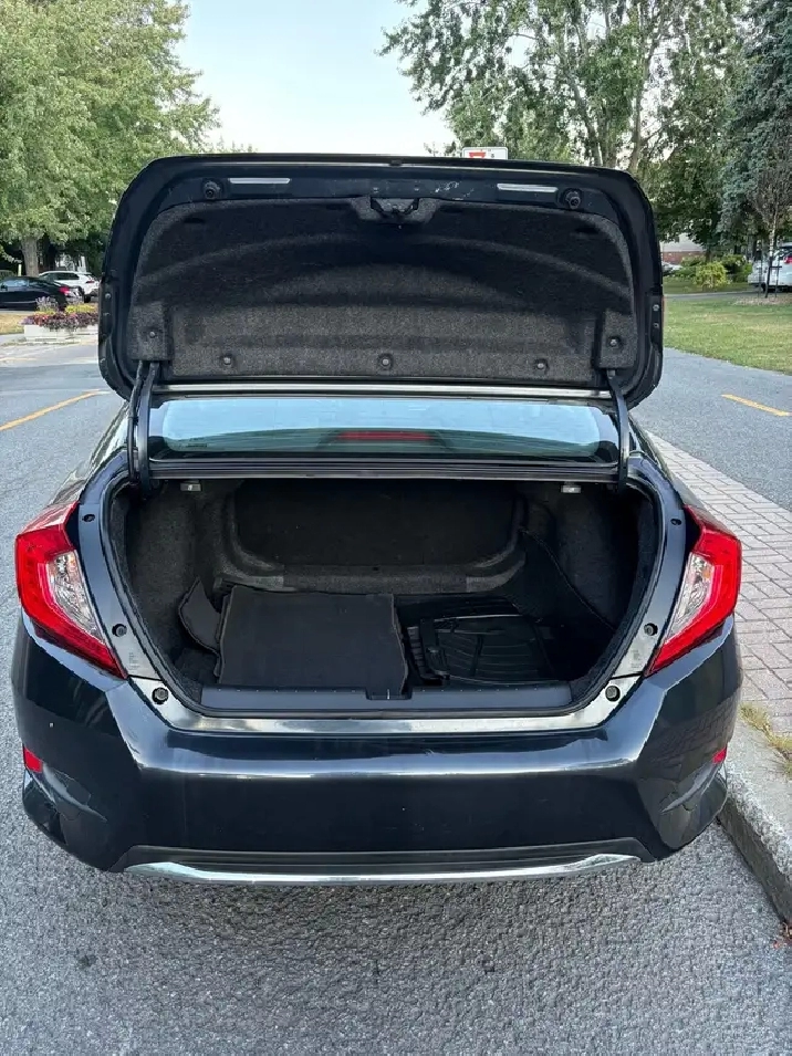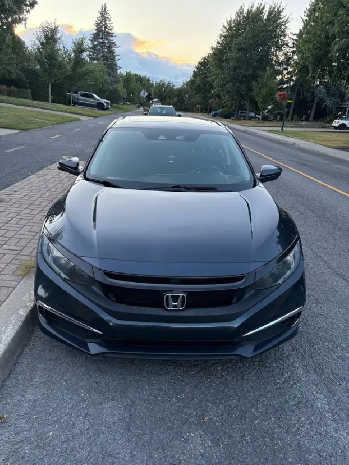 Je vend ma Honda Civic EX 2019, 4 portes en excellent état. La voiture est toute équipée : mode sport, toit ouvrant, démarreur à distance, régulateur de vitesse, siège chauffant, Bluetooth, Apple Car Play/Android Auto, caméra de recul et détection d'angle mort.