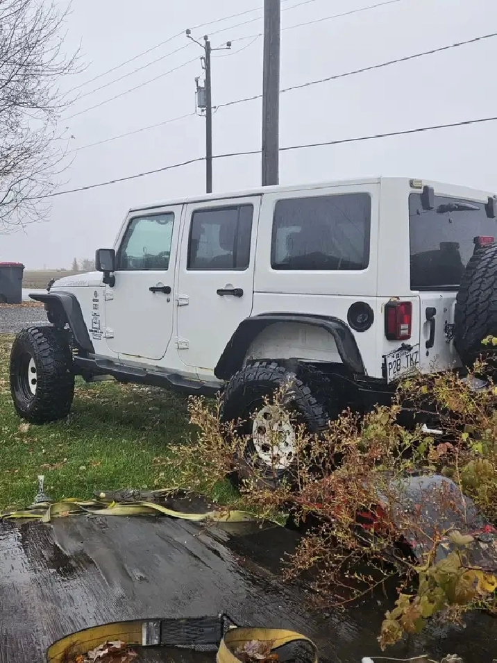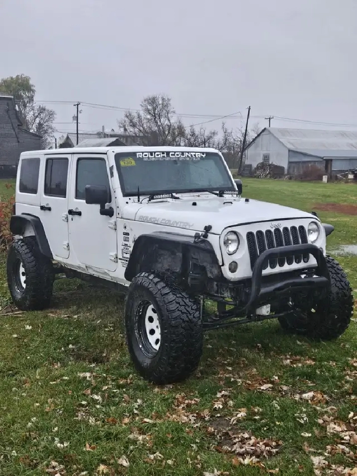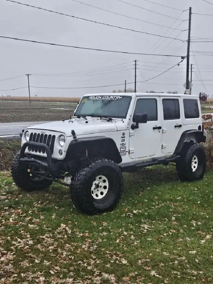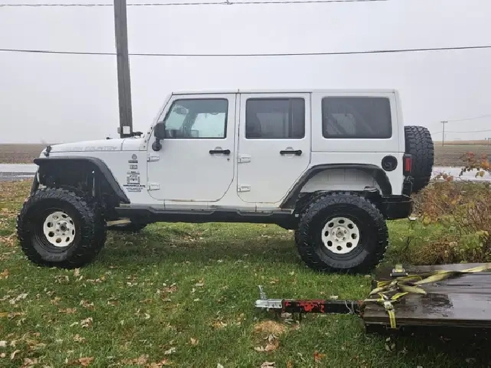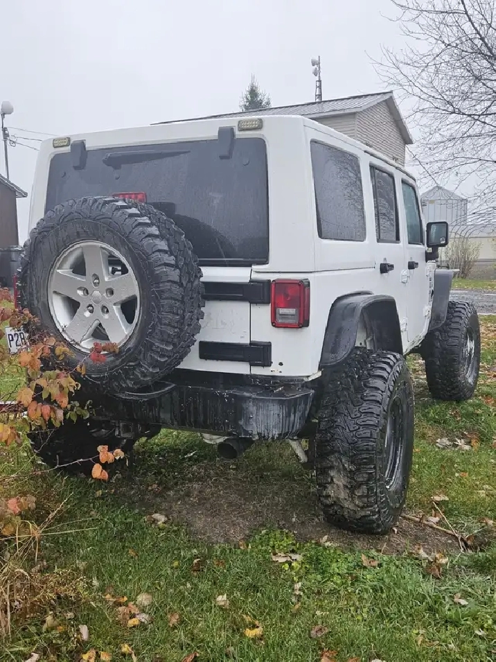 Jeep Wrangler 2014, Automatique, 179000 km, Blanc, Lift Kit de 2", inclus 10 pneus - donc 5 régulières d'origines 5 pneus de boue. Besoin un peu d'amour. Moteur a transmission o.k., A/C o.k., Besoin d'esthétique. Daniel (514)559-4731