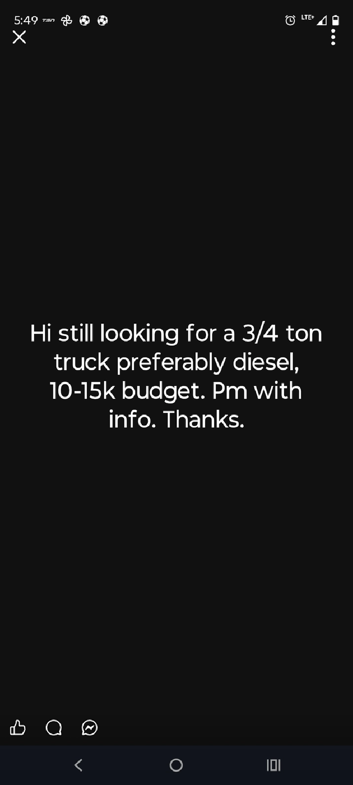 Looking for a 3/4 ton truck either duramax or Cummins. 10-15k budget. Please contact me if you have something for sale. Thanks. 519-275-1757