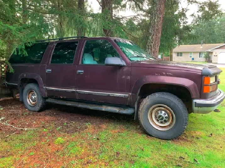 7.4L Vortec Engine, runs very well. 4x4 and automatic transmission is good. Wheels and tires are good. Interior is excellent, including 3rd row seat. Body and frame have some rust. Selling as is for parts or restoration.