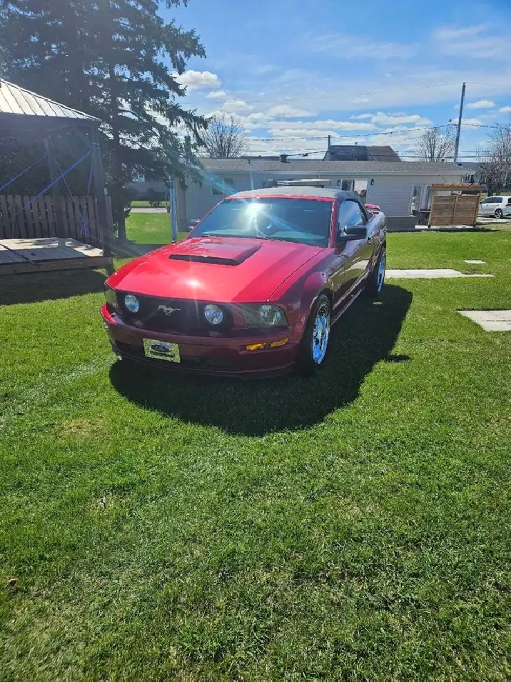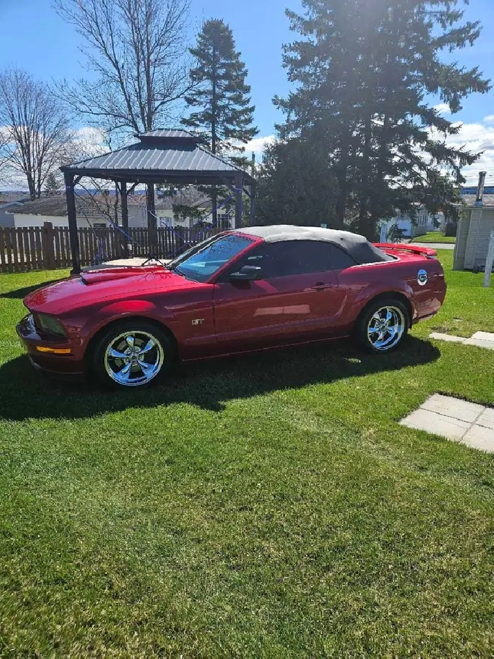 Mustang gt 2005 décapotable, moteur v8 4.6 litres avec supercharge.174400km. Muffleur ford racing, mags neuve chromer 18 pouces et pneus neufs, arceau de sécurité et filet pour retour de vent,voiture performante et plaisante a conduire. (Tout fonctionne très bien sauf quelques aiguilles dans le cluster bouge mais ne sont pas a la bonne place)Prix :14000.00$.418-241-9801