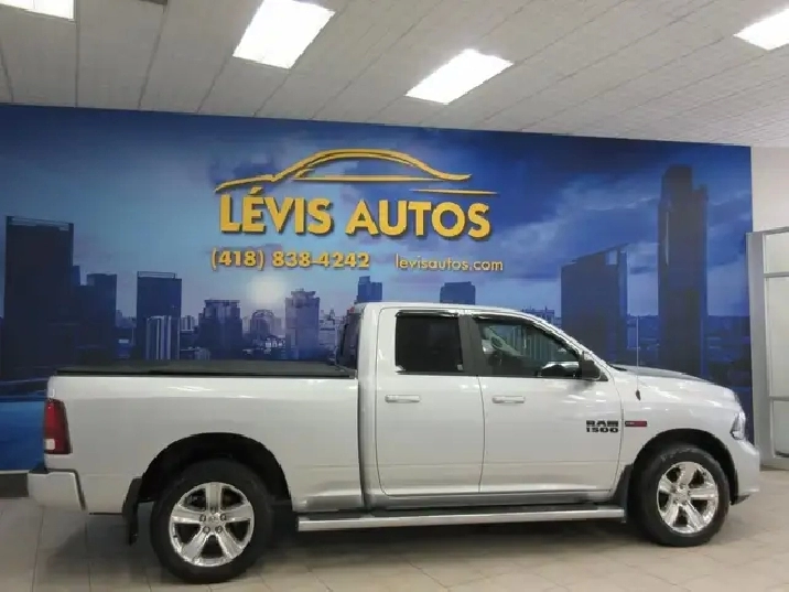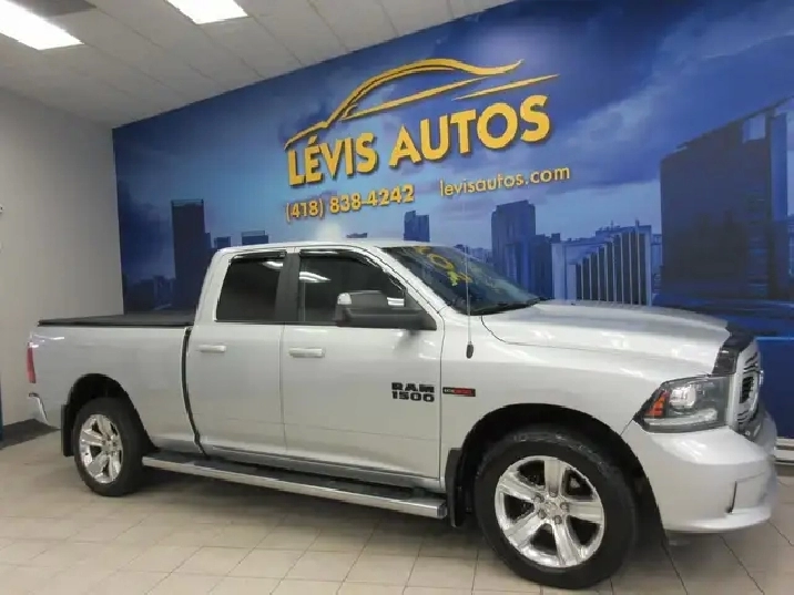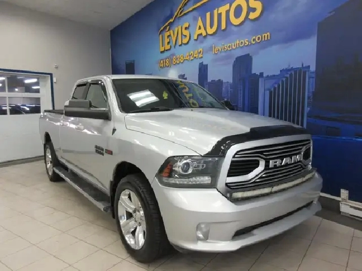 RAM 1500 SPORT 2018 ECODIESEL QUAD-CAB BOITE 6.4 PIEDS TOUT ÉQUIPÉ / CAMÉRA DE RECUL / DÉMARREUR A DISTANCE / SYSTÈME AUDIO ALPINE / BLUETOOTH / FOND DE BOITE LINE-X TOILE SUR LA BOITE AVEC SEULEMENT 245000 KM CERTIFIÉ ET NAYANT JAMAIS ÉTÉ ACCIDENTÉ ( RAPPORT CARFAX DISPONIBLE) MOTEUR V-6 3.0 LITRES ÉCODIESEL OFFRANT UNE EXCELLENTE PUISSANCE DE 240 HP ET 420 LB-FT ÉTANT LUN DES CAMIONS LE PLUS ÉCONOMIQUE DU MARCHÉ. TRANSMISSION AUTOMATIQUE AVEC LE MODE SHIFTRONIC A 8 VITESSE, MAGS 20 POUCES, CAMÉRA DE RECUL, AIR CLIMATISÉ, VITRES TEINTÉES, GROUPE ÉLECTRIQUE COMPLET, ATTACHE REMORQUE CONTROL DE FREIN ÉLECTRIQUE, RADIO AM/FM/SATELLITE ET BLUETOOTH, CRUISE CONTROL, VOLANT AJUSTABLE ET TÉLESCOPIQUE, RPM, PHARES AUTOMATIQUE, PHARES ANTI-BROUILLARDS, FREIN ABS, TÉLÉ-VERROUILLAGE. FINANCEMENT RAPIDE ET AVANTAGEUX EN LIGNE OU SUR PLACE. POUR PLUS DINFOS : 418-838-4242. NOUS SOMMES SITUÉ AU 4585 BOULEVARD GUILLAUME-COUTURE, LÉVIS, G6W 6M6. LE PLUS GRAND CHOIX DE VÉHICULES USAGÉS À LÉVIS. AU PLAISIR DE VOUS SERVIR! VISITEZ NOTRE SITE INTERNET WWW.LEVISAUTOS.COM