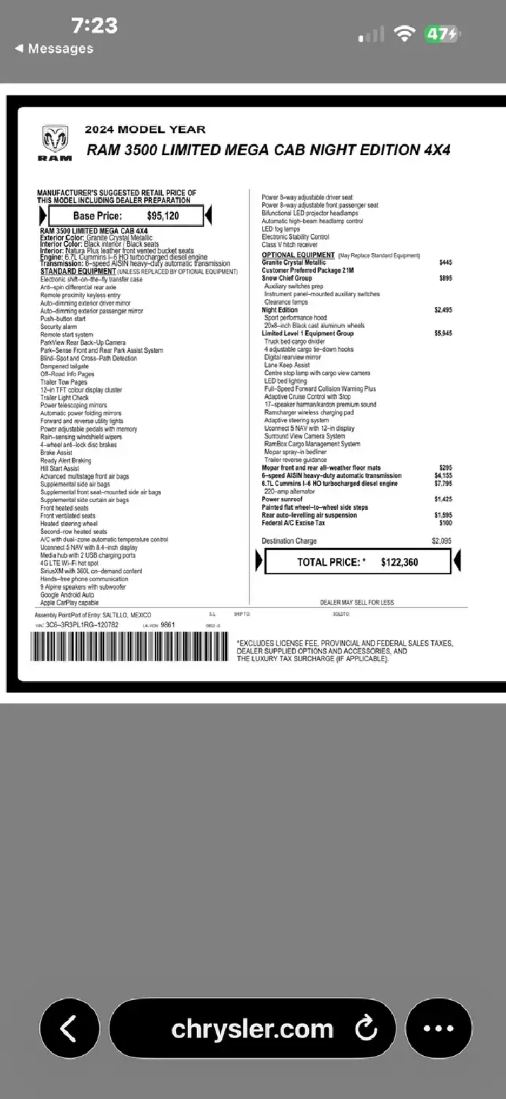 $122360 Window sticker with $13000 in Extras