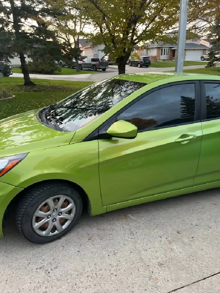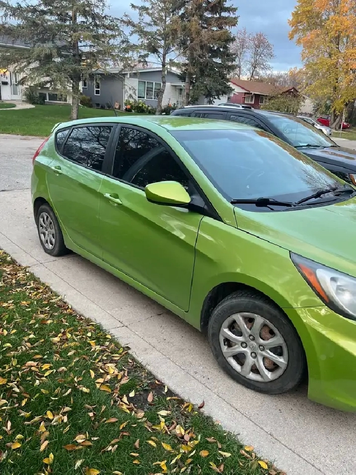 2012 Hyundai Accent fresh safety and clean title .. very clean inside and out with zero rust .. runs and drives great.. power windows doors locks mirror keylessyh eco mode great AC and heat.. very good tires .. very good in gas 1,6L .. all the work done ready for next owner .. anytime after 5:30 on weekdays.. weekend anytime.. Unicity area 204-881-6965