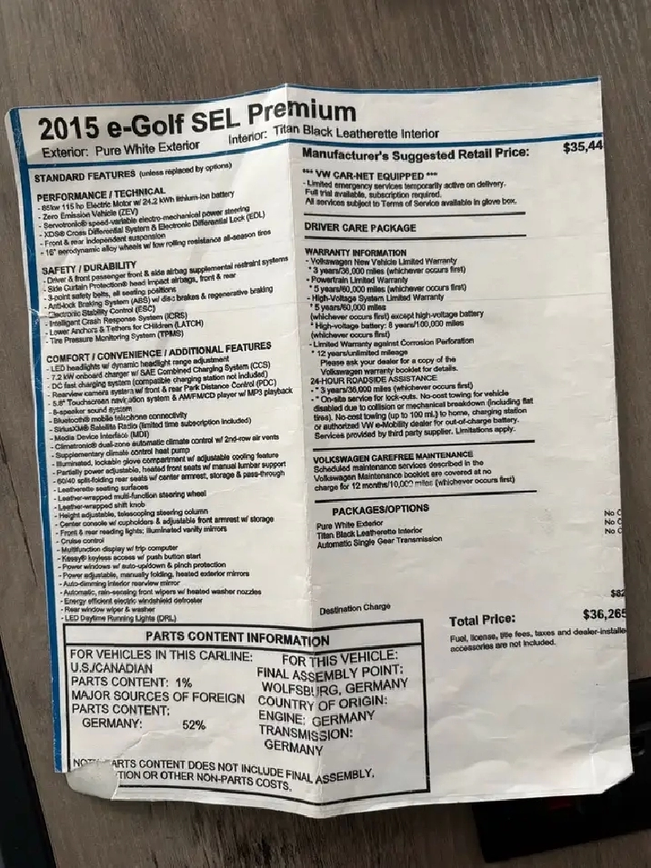 Volkswagen eGolf 2015 100% électrique,autonomie pleine charge 115 kilomètres..grosse ecran avec navigation et caméra de recul..Sièges en cuir chauffants,control au volant multi fonctions avec blue tooth,beaux mags etc… Roule comme un neuf et pas de rouille !