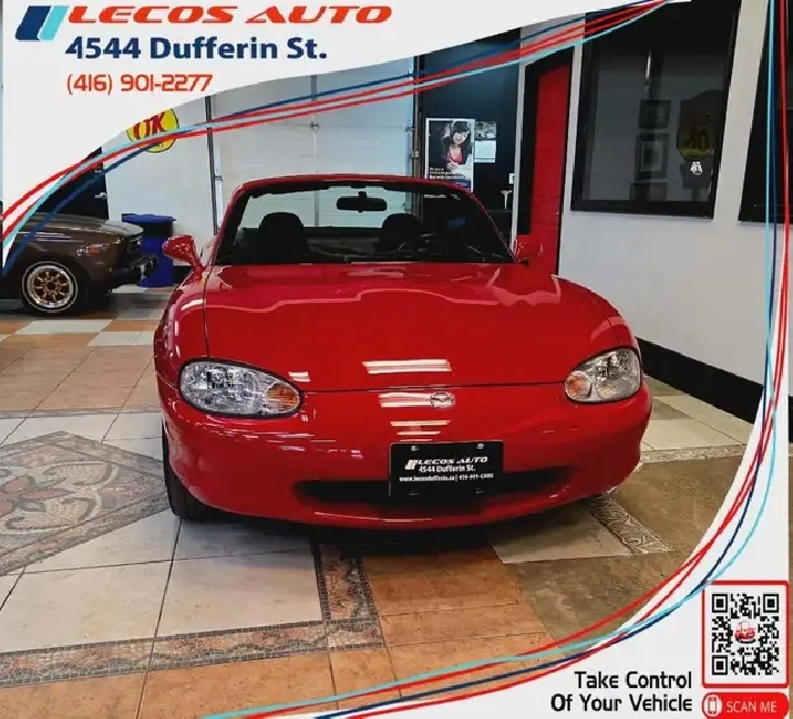 1999 Mazda MiataExcellent Condition, Very Low KMs, Clean CarFax/No Accidents, One Owner Car, Certification Included, Very Rare Hard Top in Amazing Condition, Alloy Rims, Reliable, Soft Top in Great Shape, Great Summer Cruiser, Certified! ATTENTION: THIS VEHICLE IS LOCATED AT OUR DUFFERIN DEALERSHIP LOCATED AT 4544 DUFFERIN ST. JUST SOUTH OF FINCH. YOU CAN ALSO CALL US AT 416-901-2277 FOR ADDITIONAL INFORMATION.30-day SAFETY STANDARDS CERTIFICATE WARRANTY. A safety standards certificate confirms that your vehicle meets the minimum safety standards on the date the certificate is issued.ALL in pricing! Call us today and be confident that you are buying a fully certified vehicle unless otherwise disclosed; no administration fee, no safety certificate fees, no extra charges, just licensing and taxes Some bank financing will be subject to PPSA fees and/or bank administrative fees. Charged directly by the bank to the consumer .Additional Insured finance and warranty products availableOpen 6 DAYS A WEEK Monday-Friday 9:30am to 6:00pm, Saturday 10:00am to 4:00pm excluding statutory holidays