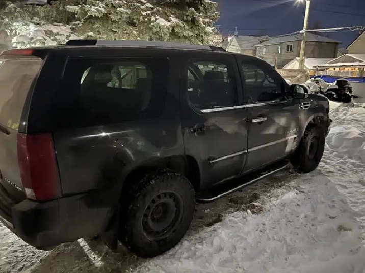 I have a Escalade saftied has newer motor with receipt brand new headlights with xenon hids new brakes and hardware all the way around has new shocks front and back has been converted to regular shocks professionally no service air ride on dash led interior lights always synthetic oil changes always ran on premium fuel has tvs in the headrest heated and cooled seats heated steering wheel needs pressure control solenoid D for the transmission lags going in first still runs and drives transmission is good had it looked at the dealer ship and they told me that what it needs just had the transmission flushed has brand new Goodyear duratracs $2000 alone just installed a month ago will have vehicle cleaned for serious buyer and will replace door handle has brand new battery installed a week ago has a bit of body work that needs to be done have a few extra parts front end is solid lots of money put into it asking 7000 obo or trade for a cateye crew cab or any Chevy crew cab truck preferably lifted and saftied no snowmobiles or atvs vehicles only any more questions or pics text only 204-294-0721 will give better deal if you bring own tires