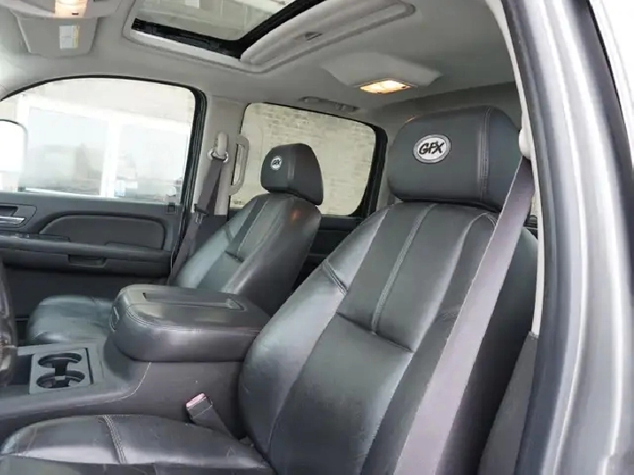 This is a fully loaded GFX with leather interior, sun roof and all the options! Heavy Duty 2500 with 6 liter V8 power train. 233,000 kilometers, eight bolt wheels with VERY good tires. Box rails, step bars, and box liner.