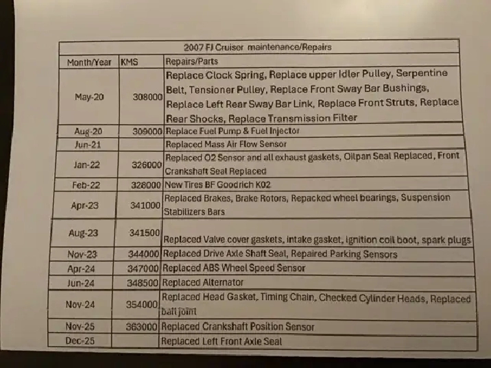 2007 FJ Cruiser 4 Door 4WD with many major repairs already done including head gasket and timing chain. All maintenance records available that are listed - all work done by mechanics.