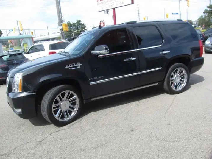 2011 CADILLAC ESCALADE PLATINUM PACKAGE, $13,995 HST Licence Fees. Sold Fully Certified, Canadian Truck with a CarFax report available, Loaded with 7 passenger Platinum Leather Seating, Navigation, Back-up Camera, heated / cooling Seats, Automatic , AWD, A/C, rear Heat, 22in.in. Platinum chrome rims, rear heated seats , heated / cooling cupholders, wood steering wheel, power tilt wheel, heated steering wheel, factory remote starter, AM/FM CD Player, tinted windows, power tail gate, 2 keys with remotes, remote starter, 3 DVD Players, Platinum HID Lights, Power Sunroof, weathertech mats, pride of ownership shown here. Great Driving Truck, Finished in Charcoal Black Metallic on Platinum 2 Tone Leather Interior, Looks Like New!, LOADED RIGHT UP!! Sold Fully Certified (At no charge to you, Buy with Confidence at Centreline Auto Group. with our NO HAGGLE!! NO HIDDEN FEES!! NO ADMIN FEES!! NO CERTIFICATION FEES!! ONLY $13,995 HST LICENCE FEES WOW WHAT DEAL!! Buy with Confidence at Centreline Auto Group. We are OMVIC Licensed and a proud member of The Used Car Dealers Association (UCDA).
