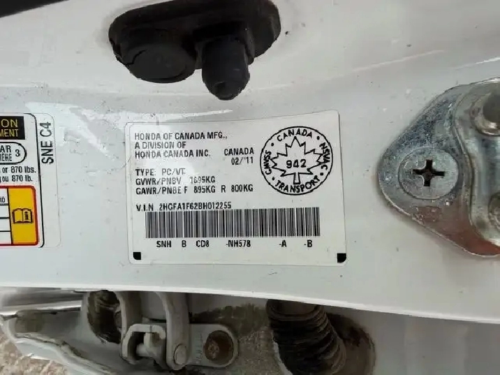 Vin #:2HGFA1F62BH012255