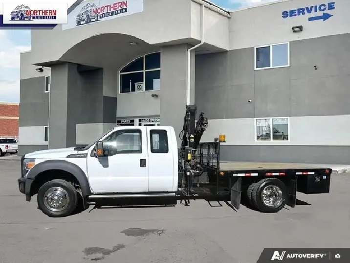 WAS: $49900 NOW: $46900 plus taxes and licensing feesThis 2012 Ford F-450 Super Duty 4x4 Extended Cab Picker Truck is a powerful and versatile work truck designed for demanding lifting and hauling applications. Equipped with the dependable 6.8L V10 gas engine, this truck delivers strong performance and proven reliability, making it a great choice for construction, equipment handling, service work, and material delivery.Outfitted with a HIAB 044 CLX knuckle boom crane, this truck provides efficient on-site lifting capability for loading and unloading materials, equipment, and supplies. The crane setup allows operators to handle heavy loads safely and efficiently, improving productivity on job sites.The deck body with integrated storage boxes offers excellent functionality, giving you ample space to transport materials while keeping tools and equipment securely organized. Combined with the 4x4 drivetrain, this F-450 is well suited for job sites, rough terrain, and challenging weather conditions.The Extended Cab configuration provides additional interior space for crew members or extra storage inside the cab, adding comfort and practicality for long workdays.Key Features:6.8L V10 gas engine4x4 drivetrainExtended Cab configurationHIAB 044 CLX knuckle boom craneHeavy-duty work deckMultiple exterior storage boxes for tools and equipmentExcellent lifting and hauling capabilityBuilt for commercial and job-site applicationsThis fully equipped F-450 crane truck is ready to go to work and is an excellent addition to any fleet needing lifting capability and reliable hauling performance.Contact us today for more details, financing options, or to schedule a viewing. Work-ready crane trucks like this are always in demand.
