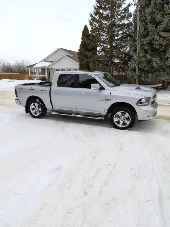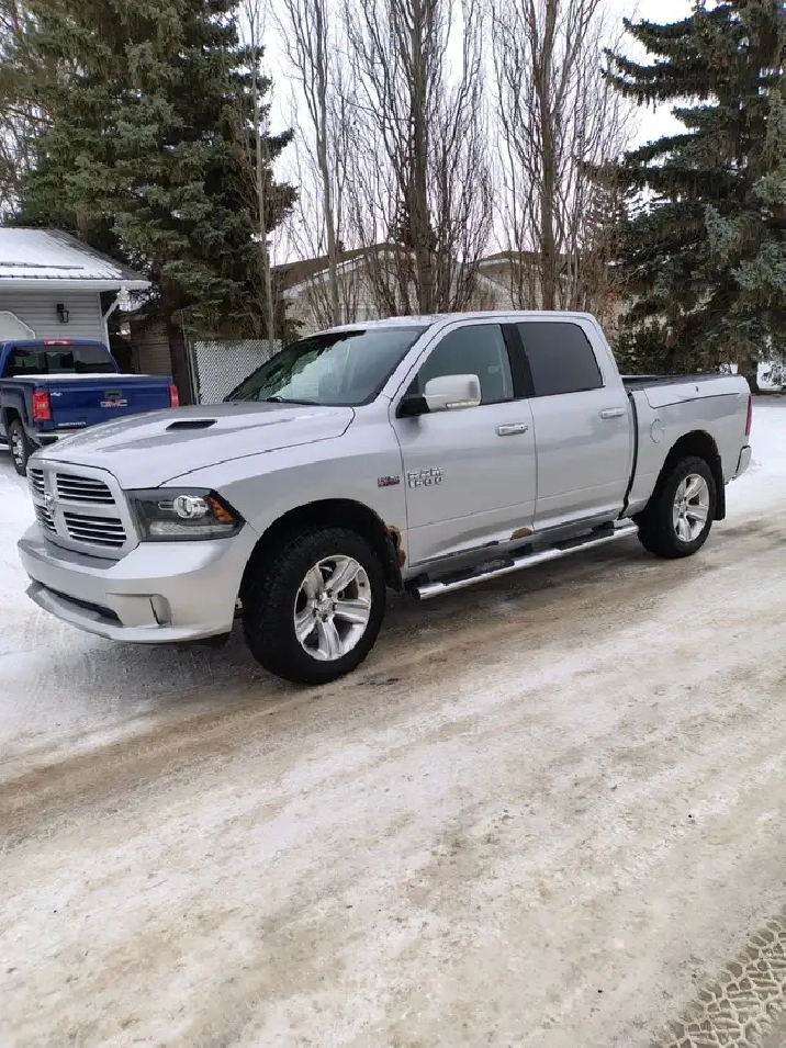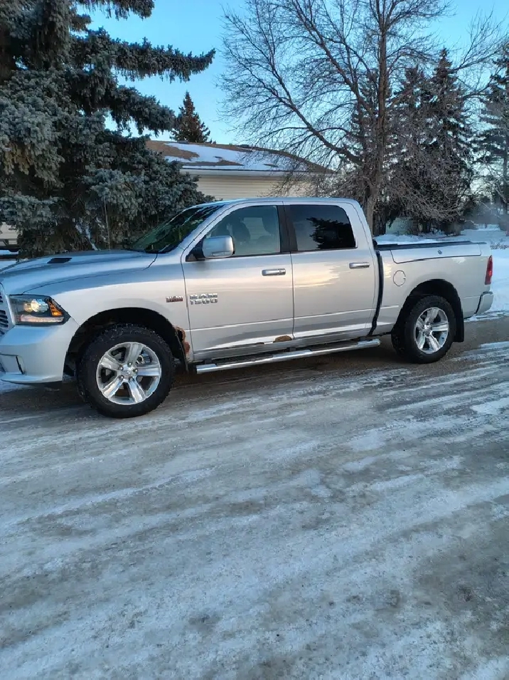 2014 Dodge Ram 1500 Crew Cab 4x4 Sport Edition that comes with remote start, a/t/c, p.d.l., p.w. sunroof, auto high beams, rain sensitive wipers, recent lifter replacement (thousands), new 20" tires on alloys, new brakes, rotors, calipers, Proximity door locks, rubber box liner, tonneau cover, runs and drives good, never been in an accident, call or Text Brian 306-843-7210 $14,000 obo