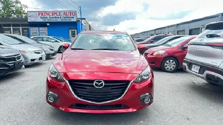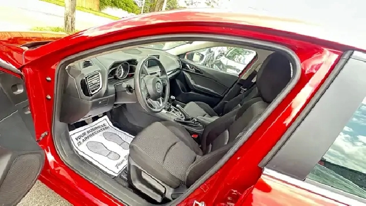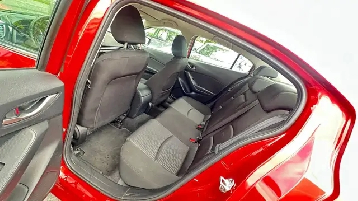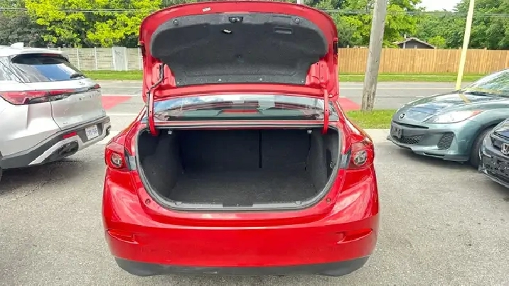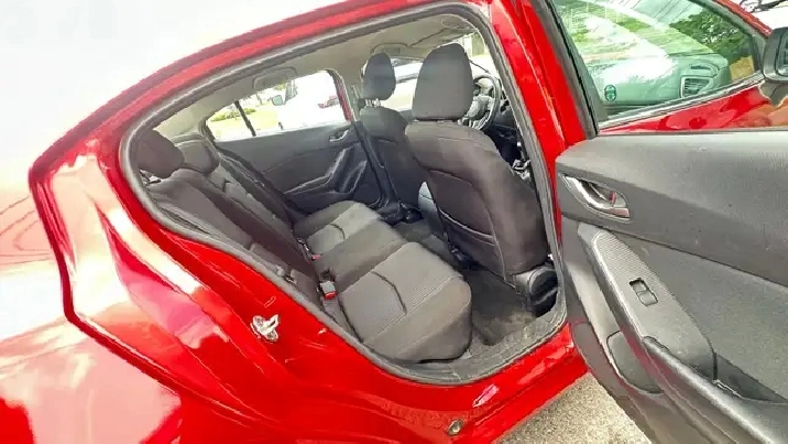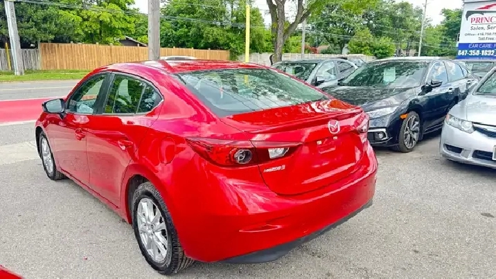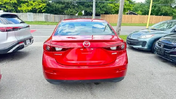 Sporty Yet Elegant 2015 Mazda3 - Red Exterior On Black Interior. Equipped with 2.0L 4 Cylinder Engine - Amazing Fuel Economy ! Offers Drivers A Comfortable And Quiet Ride, And A Cabin Thats Cleanly Styled And Full of Equipment. Loaded w/ Keyless Remote Entry, Alloy Rims, Fog Lights, Back Up Camera, Automatic High Beams, Air Conditioning, Power Windows w/Drivers Side Auto-Up, Steering Wheel Mounted Audio Controls, Cruise Control, Telescoping Steering Column, Bluetooth , Four-Speaker AM/FM/CD/MP3 Stereo w/ USB/iPod Input, Power Door Locks, Trip Computer & Much More!
