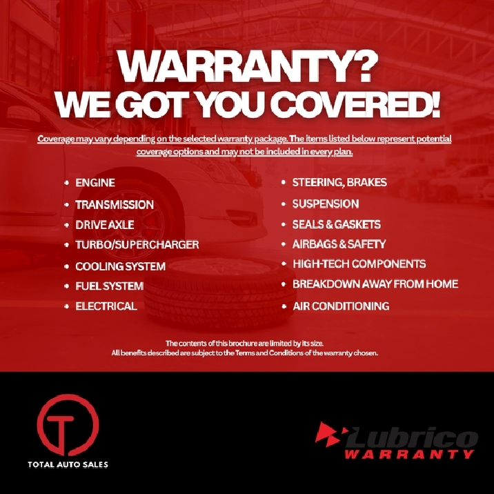 WARRANTY. We provide extended warranties up to 48m with optional coverage up to 10,000$ per/claim with unlimited kms.