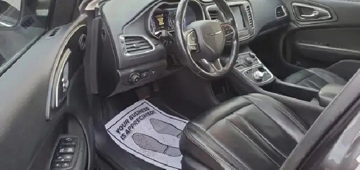 The Chrysler 200 Comes In A Black Exterior Paired Black Leather Interior. Features 3.6L V6 Cylinder Engine. Limited Edition Features 17in. Aluminum Wheels, Heated Side Mirrors, Eight-Way Power Driver's Seat w/ Four-Way Power Lumbar Support, Bluetooth with Streaming Audio Function, Heated Front Seats, LED Daytime Running Lights, Leather-Trimmed Steering Wheel, One-Touch Up/Down Power Windows, Fog Lights, Rear Chrome Accents, Satellite Radio, Six-Speaker Stereo, and Uconnect 5.0. Also Loaded w/ Power Sunroof, 60/40 Split-Folding Rear Seat, Air Conditioning, Ambient Interior Lighting, Auxiliary Input, Two 12-Volt Power Outlets, USB Port, Power Locks/Windows, Rear-Seat Armrest with Cupholders & Storage, Steering Wheel-Mounted Audio & Cruise Controls, Tilt-and-Telescopic Steering, Centre Console Storage with Armrest, Active Grille Shutters, Automatic Headlights, LED Taillights, Touring Suspension, Electric Parking Brake, Four-Wheel Disc Brakes, Intelligent Keyless Entry, Tire Pressure Monitoring, Tire Service Kit & Much More!!!
