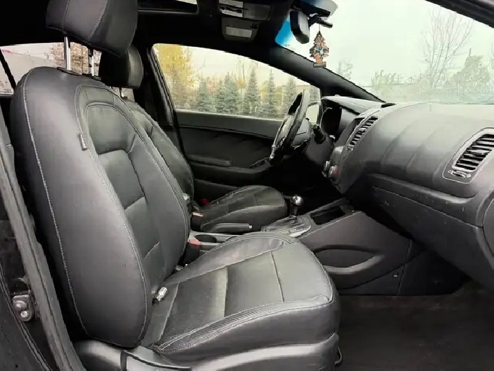 2015 KIA FORTE, AUTOMATIC, 4-CYLINDER 2.0 LITER, HEATED LEATHER SEATS, SUNROOF, AIR CONDITIONING, BLUETOOTH PHONE CONNECTIVITY, POWER DOORS/MIRRORS/WINDOWS, BLACK, NEVER BEEN IN AN ACCIDENT, WINTER TIRES IN VERY GOOD CONDITION, ABS BRAKES, VERY CLEAN INTERIOR, CAR RUNS PERFECTLY
