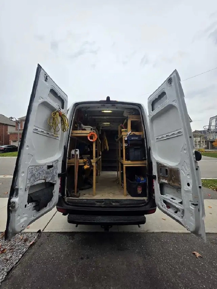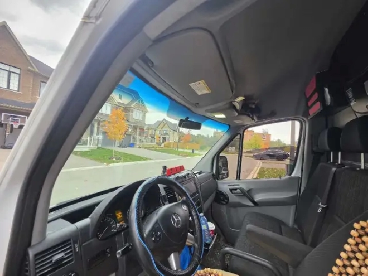 2015 Mercedes Sprinter 2500, high roof, Diesel. 335082 KM. 4×4. , Drives great, no issues or no dash lights. Power windows, power locks, Regularly maintained, aftermarket Kenwood stereo system with android auto connect.115V outlet in cabin. Seating for 3 people in the front. It also comes with extra set of 4 brand new tires. All tools inside and decals on the outside will be removed once deposit is received. Please call 416-858-7517 for more information. Thank you.