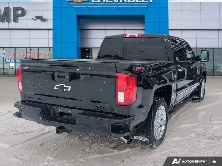 Silverado 1500 High Country, 4D Crew Cab, EcoTec3 5.3L V8, 8-Speed Automatic with Overdrive, 4WD, Black, Leather, 110-Volt AC Power Outlet, 150 Amp Alternator, 3.42 Rear Axle Ratio, 4.2 Diagonal Colour Display Driver Info Centre, ABS brakes, Alloy wheels, Auto-Dimming Inside Rear-View Mirror, Automatic temperature control, Auxiliary External Transmission Oil Cooler, Bluetooth For Phone, Brake assist, Chevrolet Connected Access, Chevrolet w/4G LTE, Chrome Bodyside Mouldings, Chrome Cap Power-Adjustable Heated Outside Mirrors, Chrome Door Handles, Chrome Grille Surround, Chrome Mirror Caps, Deep-Tinted Glass, Driver & Front Passenger Illuminated Vanity Mirrors, Dual front impact airbags, Dual front side impact airbags, Dual-Zone Automatic Climate Control, Electric Rear-Window Defogger, Electronic Stability Control, Emergency communication system: OnStar Directions & Connections, Enhanced Driver Alert Package, Exterior Parking Camera Rear, EZ Lift & Lower Tailgate, Floor Mounted Console, Forward Collision Alert, Front anti-roll bar, Front Bucket Seats, Front fog lights, Front Full Feature Power Reclining Bucket Seats, Front wheel independent suspension, Fully automatic headlights, Garage door transmitter, HD Radio, Heated & Vented Front Seating, Heated steering wheel, Heavy-Duty Rear Locking Differential, Integrated Trailer Brake Controller, IntelliBeam Automatic High Beam On/Off Headlight, Lane Keep Assist, Leather Wrapped Heated Steering Wheel, Leather Wrapped Steering Wheel w/Cruise Controls, LED Taillamps w/Signature, Low Speed Forward Automatic Braking, Low tire pressure warning, Navigation System, OnStar & Chevrolet Connected Services Capable, Overhead airbag, Perforated Leather Appointed Seat Trim, Power Adjustable Pedals, Power passenger seat, Power Sliding Rear Window, Power steering, Power Sunroof, Power windows, Preferred Equipment Group 3LZ, Radio data system, Radio: AM/FM 8 Diagonal Clr Touch Nav, Rear 60/40 Folding Bench Seat (Folds Up), Rear Wheelhouse Liners, Remote Locking Tailgate, Remote Vehicle Starter System, Security system, Single Slot CD/MP3 Player, SiriusXM, Speed-sensing steering, Spray-On Pickup Box Bed Liner, Steering Wheel Audio Controls, Steering wheel mounted audio controls, Thin Profile LED Fog Lamps, Traction control, Trailering Package, Ultrasonic Front & Rear Park Assist, Universal Home Remote, Wireless Charging.