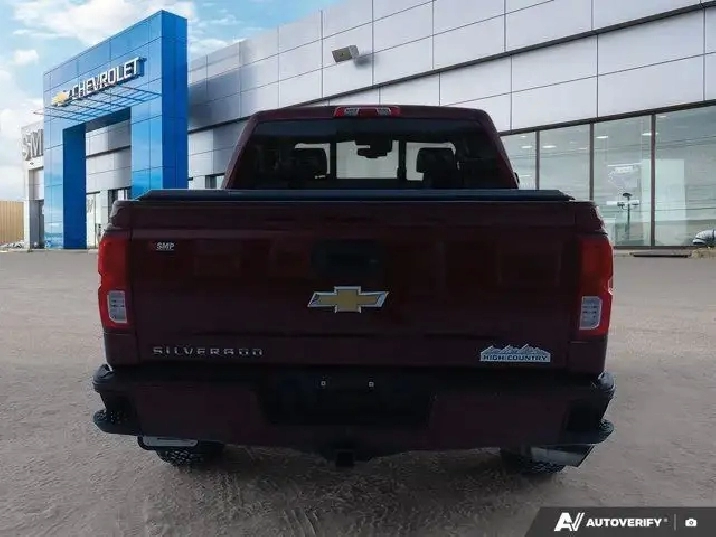 - High Country includes High Country brushed metal sill plate, (AN3) front full-feature leather-appointed bucket seats, (KB6) heated and vented seats, (K4C) Wireless Charging, (B58) colour-keyed carpeted floor mats, (D07) centre floor console, (UQA) Bose sound system, (NZJ) 20" chrome wheels, (IO6) MyLink 8" Diagonal Colour Touch audio system with Navigation, (QSS) P275/55R20 all-season, blackwall tires, (UD5) Front and Rear Park Assist, (VB5) body-colour front bumper, (VT5) body-colour rear bumper, unique chrome grille, (V76) Black recovery hooks, (VQZ) polished exhaust tip, LPO, (CTD) cargo tie downs, dealer-installed (4) and (BVQ) chrome assist steps