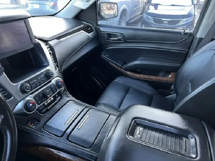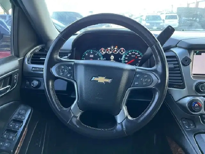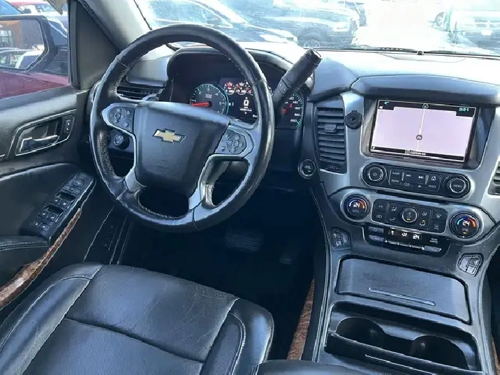 NEW ARRIVAL! Beautiful Black on Black Leather Interior 2016 CHEVROLET TAHOE LTZ. 4WD. NO ACCIDENTS! CLEAN IN AND OUT! 5.3L V8. 7 Seater. Has 183,436 Kms. Runs Great. No issues. FULLY LOADED with Navigation System, Backup Camera, Front and 2nd Row Heated Seats, 2nd Row Power Release Bucket Seats, Front Cooling Seats, Heated Steering Wheel, Push Button Start, Power Liftgate, Remote Starter, Sunroof, Power Fold 3rd Row Seat, 22-inch Aluminum Rims, Power Tilt and Telescopic Steering, Front and Rear Park Assist, Bluetooth, and MORE!!