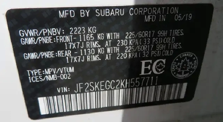 - Tires: P225/60R17 All-Season