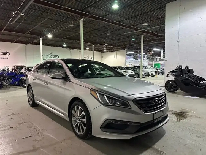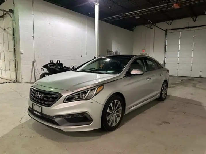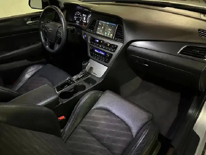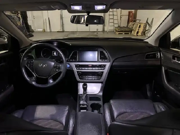 The 2016 Hyundai Sonata Sport Tech is powered by a 2.0 L turbocharged inline-4 producing 245 hp and 260 lb-ft of torque, paired to a smooth automatic transmission and a curb weight of approximately 3,400 lb.