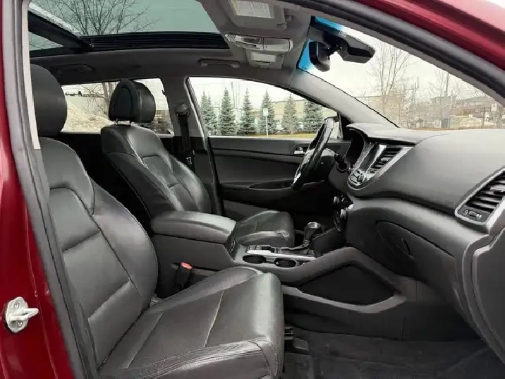 2016 Hyundai Tucson, 4x4, Automatic, 4-cylinder 1.6-liter engine, heated leather seats, backup camera, sunroof, push-button start, Bluetooth phone connectivity, remote starter, power doors/mirrors/windows, Burgundy, never been in an accident, original paint, no rust, excellent tire tread on the rims, ABS brakes, very clean interior.