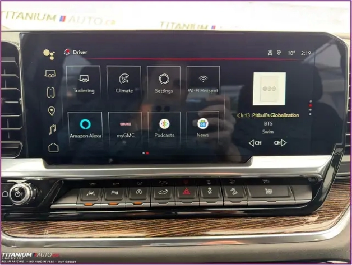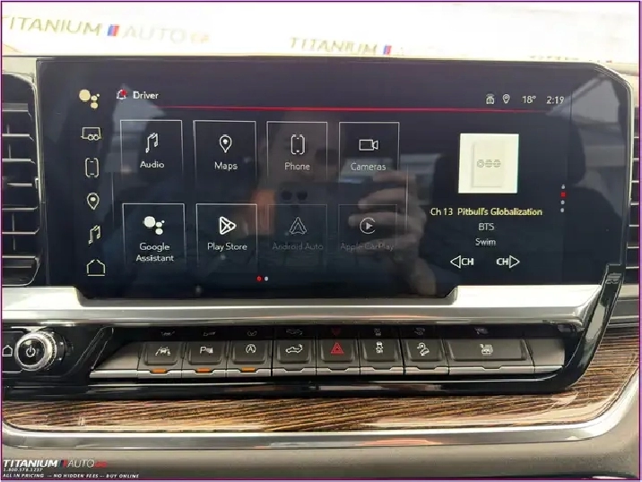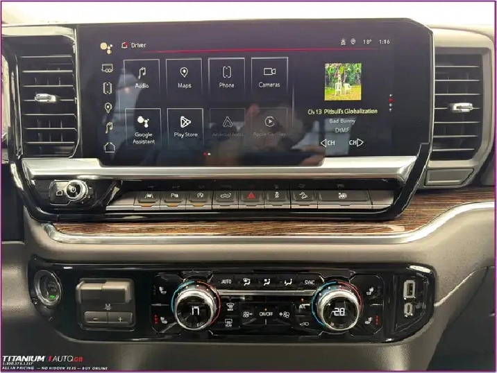 - Audio System, 13.4 " diagonal Premium GMC Infotainment System with Google built in apps such as navigation and voice assistance, includes colour touch-screen, multi-touch display, AM/FM stereo Bluetooth streaming audio for music and most phones; featuring wireless Android Auto and Apple CarPlay capability for compatible phones