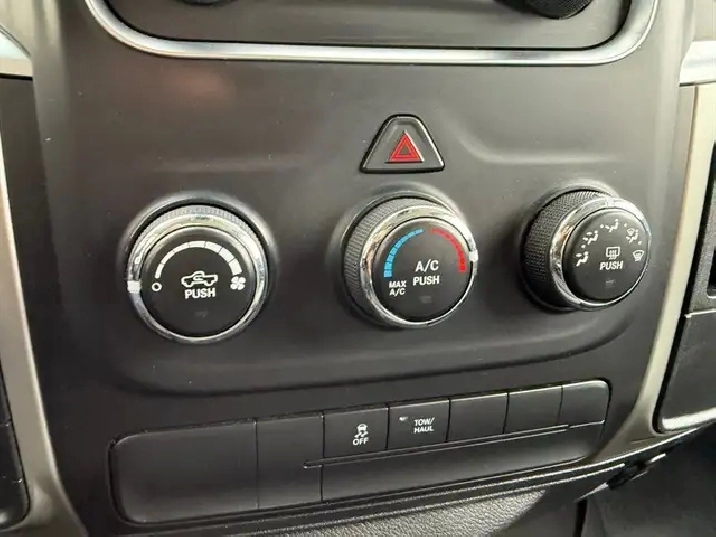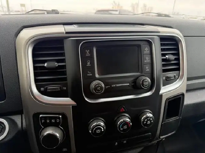 INSTALLED FEATURES: Front air conditioning, Front air conditioning zones: single, Airbag deactivation: occupant sensing passenger, Front airbags: dual, Side airbags: front, Side curtain airbags: front / rear, Antenna type: diversity / mast, Auxiliary audio input: Bluetooth / jack / USB, Radio: AM/FM / touch screen display / voice operated, Radio data system, Satellite radio: SiriusXM, Speed sensitive volume control, Total speakers: 6, ABS: 4-wheel, Brake drying, Braking assist, Electronic brakeforce distribution, Front brake type: ventilated disc, Power brakes, Rear brake type: ventilated disc, Armrests: front center, Floor mat material: carpet, Floor material: carpet, Floor mats: front / rear, Steering wheel trim: urethane, Assist handle: front / rear, Cruise control, Cupholders: front / rear, Multi-function remote: keyless entry, One-touch windows: 2, Overhead console: front, Power outlet(s): 12V, Power steering, Power windows: lockout button, Reading lights: front, Rearview mirror: manual day/night, Steering wheel: tilt, Steering wheel mounted controls: cruise control, Storage: door pockets / under rear seats, Vanity mirrors: passenger, Active grille shutters, Door handle color: chrome, Front bumper color: chrome, Grille color: black / chrome surround, Mirror color: black, Pickup bed light, Rear bumper color: chrome, Tailgate: power locking / removable, Window trim: black, Infotainment: Uconnect, Infotainment screen size: 5 in., Clock, Compass, Digital odometer, External temperature display, Fuel economy display: MPG / range, Gauge: tachometer, Instrument cluster screen size: 3.5 in., Multi-function display, Powertrain hour meter, Trip odometer, Warnings and reminders: low fuel level / low oil level / maintenance due, Headlights: auto delay off / auto on/off / halogen / quad headlights, Side mirror adjustments: manual folding / power, Side mirrors: heated, 4WD selector: electronic hi-lo, 4WD type: part time, Alternator: 160 amps, Auxiliary oil cooler, Auxiliary transmission fluid cooler, Battery: maintenance-free, Battery rating: 730 CCA, Emissions: 50 state, Child safety door locks, Child seat anchors: LATCH system, Crumple zones: front, Emergency locking retractors: front / rear, Front seatbelts: 3-point, Rear seatbelts: 3-point, Seatbelt force limiters: front, Seatbelt pretensioners: front, Seatbelt warning sensor: front, Driver seat manual adjustments: reclining, Front headrests: 2 / adjustable, Front seat type: 40-20-40 split bench, Passenger seat manual adjustments: reclining, Rear headrests: 3 / adjustable, Rear seat folding: folds up, Rear seat type: bench, Upholstery: cloth, Anti-theft system: vehicle immobilizer, Power door locks, Hill holder control, Roll stability control, Stability control, Traction control, Trailer stability control, Front shock type: gas, Front spring type: coil, Front stabilizer bar, Front struts, Front suspension classification: independent, Front suspension type: short and long arm, Rear shock type: gas, Rear spring type: coil, Rear stabilizer bar, Rear suspension classification: solid live axle, Rear suspension type: multi-link, Electronic messaging assistance: voice operated / with read function, Wireless data link: Bluetooth, Trailer wiring: 4-pin / 7-pin, Spare tire mount location: underbody, Spare tire size: full-size matching, Spare wheel type: steel, Tire Pressure Monitoring System, Wheels: aluminum alloy, Front wipers: variable intermittent, Pickup sliding rear window: power horizontal, Power windows, Rear privacy glass