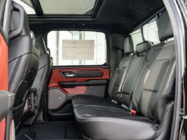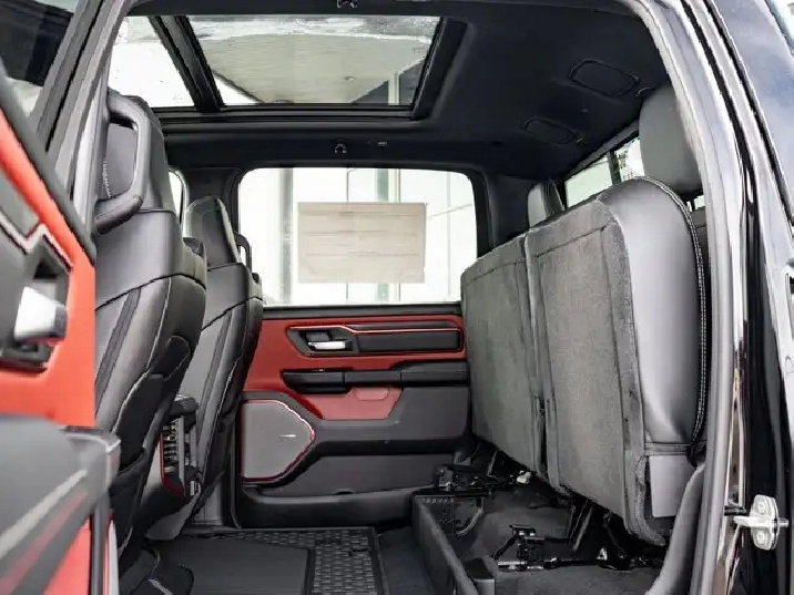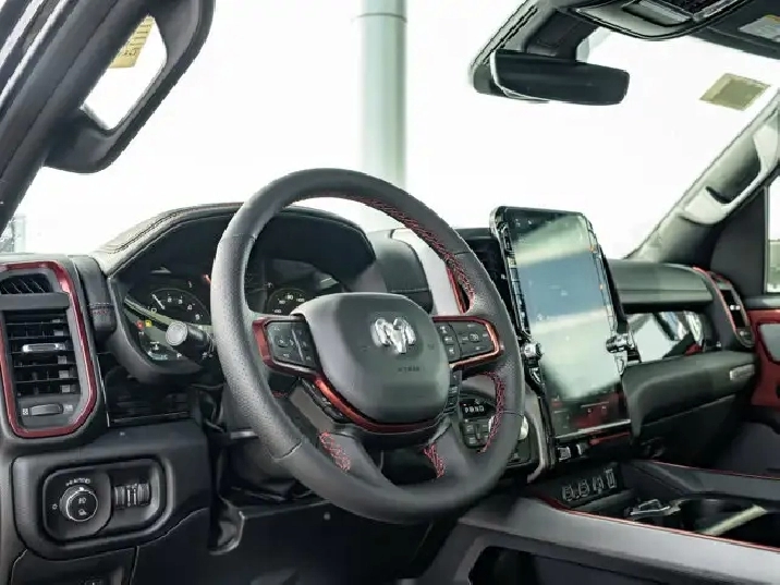 • DECAL DELETE,DUAL-PANE PANORAMIC SUNROOF -inc: LED Dual Dome Reading Lamps,TRAILER BRAKE CONTROL,BED UTILITY GROUP -inc: MOPAR Spray-In Bedliner 4 MOPAR Adjustable Cargo Tie-Down Hooks Exterior 115V Auxiliary Power Outlet,DIAMOND BLACK CRYSTAL PEARLCOAT,ENGINE: 3.0L I6 HURRICANE SO TWIN TURBO ESS (STD),DIAMOND BLACK CRYSTAL PEARL,TRANSMISSION: 8-SPEED AUTOMATIC (STD),MONOTONE PAINT,REAR WHEELHOUSE LINERS,BLACK LUXURY LEATHER-FACED FRONT BUCKET SEATS -inc: Power 2-Way Passenger Lumbar Adjust Front Ventilated Seats Front Heated Seats Heated Steering Wheel Power 8-Way Adjustable Front Passenger Seat Power 2-Way Driver Lumbar Adjust,RADIO: UCONNECT 5 NAV W/14.4 DISPLAY,QUICK ORDER PACKAGE 21W REBEL -inc: Engine: 3.0L I6 Hurricane SO Twin Turbo ESS Transmission: 8-Speed Automatic,REBEL LEVEL 2 EQUIPMENT GROUP -inc: Power Adjustable Pedals w/Memory Front Passenger Interactive Display Power 2-Way Passenger Lumbar Adjust 115V Rear Auxiliary Power Outlet Media Hub w/2 USB Charging Ports Proximity Approach/Departure Lamps Power 8-Way Adjustable Front Passenger Seat Security Alarm Dual Wireless Charging Pad 19-Speaker harman/kardon Premium Sound Rear Window Defroster Rain-Sensing Windshield Wipers Radio: Uconnect 5 Nav w/14.4 Display Accent Colour Door Handles 2nd-Row Ventilated Seats Black Painted Exterior Mirror Caps Off-Road Information Pages Exterior Mirrors Approach Lamps Smartphone As A Key 14.4 Touchscreen Display Accent-Colour Premium Power Mirrors Remote Proximity Keyless Entry Accent Colour Tailgate Handle Exterior Mirrors w/Memory Settings Driver Seat w/Memory Setting Power Tailgate Radio/Driver Seat/Mirrors/Pedals Memory,Turbocharged,Four Wheel Drive,Locking/Limited Slip Differential,Power Steering,Tow Hitch,Remote Engine Start,Lane Departure Warning,Traction Control,Driver Air Bag,Cruise Control,Keyless Entry,Cloth Seats,ABS,Trip Computer,Navigation System,Tow Hooks,Navigation System,Premium Sound System,Climate Control,MP3 Capability,A/C,Heated Steering Wheel,Front Side Air Bag,WiFi Hotspot,Immobilizer,Smart Device Integration,Bluetooth Connection,Tires - Rear All-Terrain,Rear Bench Seat,Universal Garage Door Opener,Stability Control,Satellite Radio,Heated Front Seat(s),Auto-Dimming Rearview Mirror,Floor Mats,Passenger Air Bag Sensor,Blind Spot Monitor,Power Door Locks,Automatic Headlights,Power Driver Seat,Adaptive Cruise Control,Bluetooth Connection,Tire Pressure Monitor,LED Headlights,Front Head Air Bag,Power Folding Mirrors,Passenger Air Bag,Multi-Zone A/C,Lane Departure Warning,Back-Up Camera,Smart Device Integration,Power Windows,Pass-Through Rear Seat,Keyless Start,Power Door Locks,Aluminum Wheels,Keyless Start,Intermittent Wipers,Smart Device Integration,Vinyl Seats,HD Radio,Requires Subscription,4-Wheel Disc Brakes,Traction Control,Driver Vanity Mirror,Passenger Vanity Mirror,Variable Speed Intermittent Wipers,Child Safety Locks,Automatic Highbeams,Adjustable Steering Wheel,Power Windows,Integrated Turn Signal Mirrors,Driver Adjustable Lumbar,Trip Computer,HD Radio,Requires Subscription,Rear Parking Aid,Power Mirror(s),Cross-Traffic Alert,Lane Keeping Assist,Passenger Illuminated Visor Mirror,Brake Assist,Power Door Locks,Driver Adjustable Lumbar,Satellite Radio,Remote Engine Start,Tires - Front All-Terrain,AM/FM Stereo,Rear Head Air Bag,Front Collision Mitigation,Bucket Seats,Steering Wheel Audio Controls,Requires Subscription,Privacy Glass,Premium Sound System,Leather Steering Wheel,Auxiliary Audio Input,Fog Lamps,Daytime Running Lights,Driver Illuminated Vanity Mirror,Heated Mirrors,Conventional Spare Tire