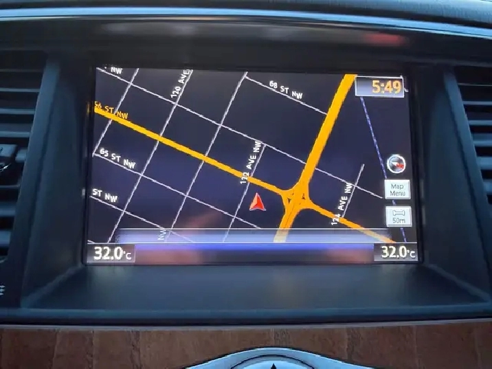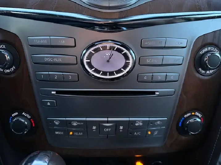 - Radio: AM/FM w/Single In-Dash CD/DVD Player -inc: INFINITI controller w/8" WVGA colour touch-screen display, INFINITI hard drive navigation system w/lane guidance and 3-D building graphics, INFINITI voice recognition for audio, navigation and vehicle information systems, XM NavTraffic w/real-time traffic information, Bose Cabin Surround sound system w/digital 5.1 decoding, 15 speakers, MP3 playback capability, Radio Data System (RDS), speed-sensitive volume control, streaming audio and hands-free phone system via Bluetooth wireless technology, USB connection port for iPod interface and other compatible devices, auxiliary audio/video input jacks in front centre console and Bose Centrepoint 2 signal processing