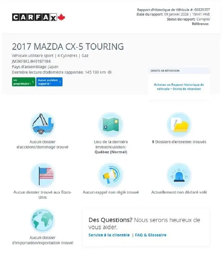 - AUCUN ACCIDENT ET UN PROPRIÉTAIRE
