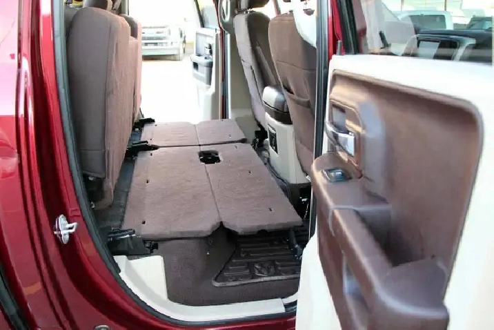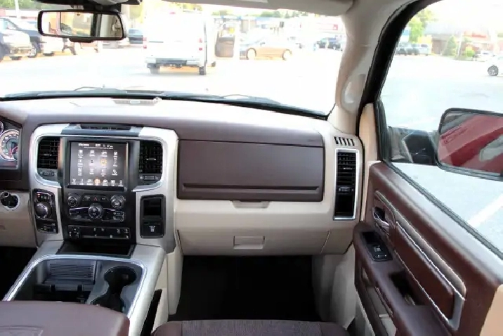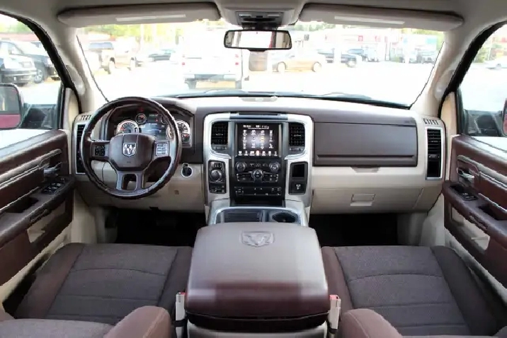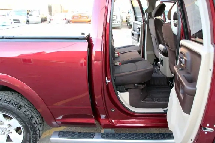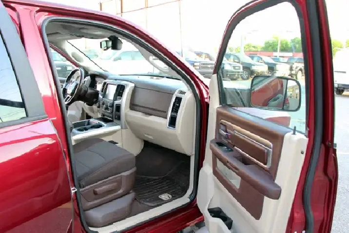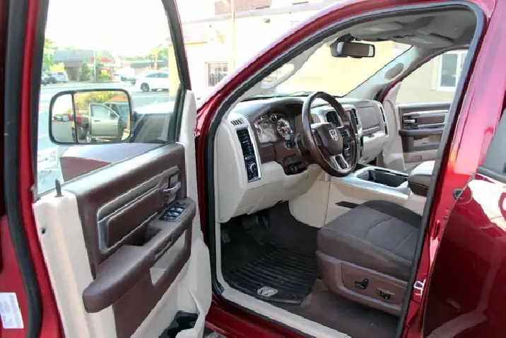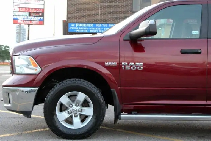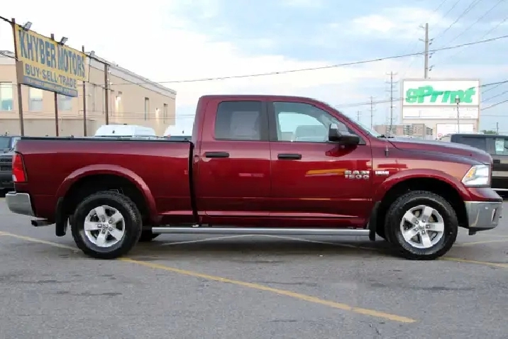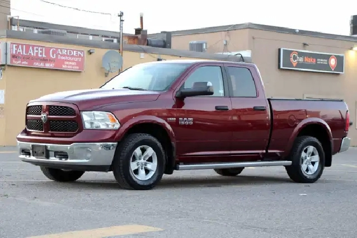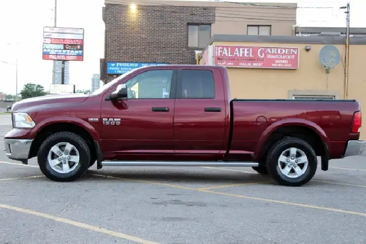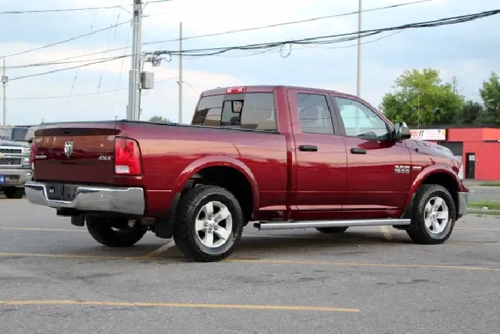 2017 RAM 1500 Outdoorsman Quad Cab 4x4 5.7L Hemi with 205,662 original kilometers. Beautiful Maroon on Brown/Beige interior. Carfax Clean, Ontario vehicle. Equipped with Power drivers seat with lumbar, steering wheel controls, back-up camera, park assist sensors, heated seats, heated steering wheel, factory trailer brake, Fog lights, Extended Side Steps, Spray in bedliner with tri-fold tunnel cover. Interior in excellent condition and air conditioning blowing cold. Runs and drives very smooth, well serviced truck. Certified with our 2 year power train warranty included.