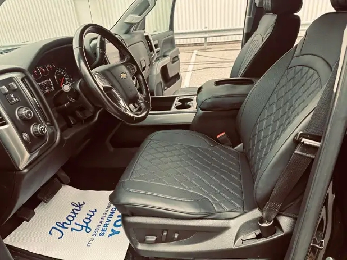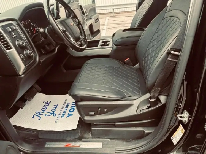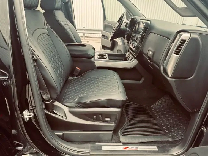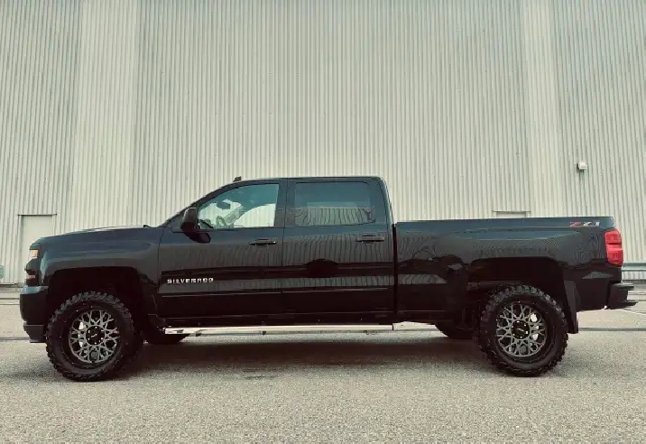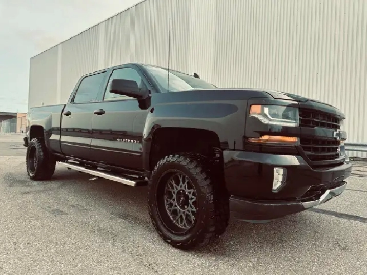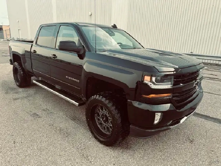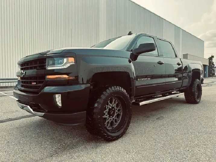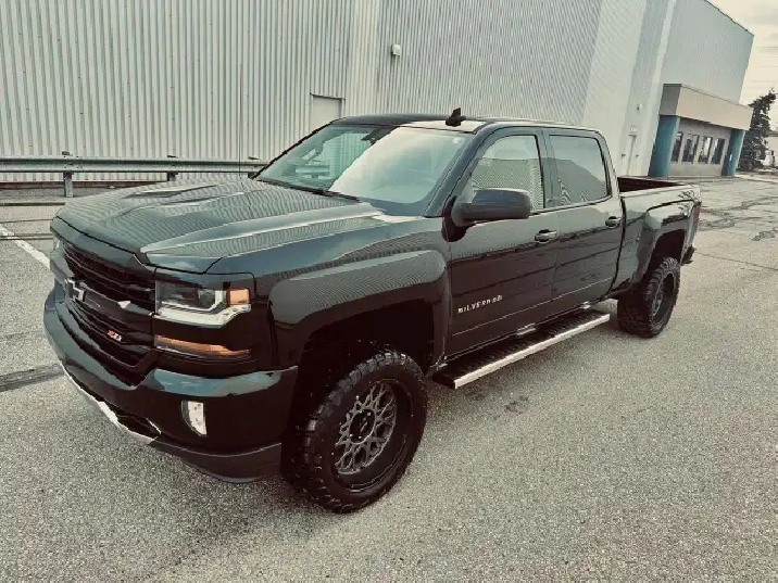 LOW KMS (99,200 KMS) • CUSTOM EDITION • LIFTED • Z71 OFF-ROAD – This 2018 Chevrolet Silverado Crew Cab 2LT 4X4 finished in deep black exterior over custom leather interior is an outstanding example of a clean, well-built, and tastefully upgraded truck. Showing only 99,200 kms, this Silverado stands out with its aggressive stance and premium upgrades including 20" black/grey Vision Performance wheels wrapped in brand new 33X12.5R20LT all-season tires, lifted suspension, performance Rough Country air intake, and brand new chrome running boards. Powered by the legendary 5.3L V8 engine paired with a 6-speed automatic transmission and 4X4 drivetrain, this truck delivers strong performance, reliability, and excellent capability for towing, work, or everyday driving. Fully loaded with options and features including Z71 Off-Road Package, GM Trailering Package, spray-in bed liner, LED lighting, backup camera with park assist, remote start system, keyless entry, heated power front seats, full center console with overhead console, dual-zone automatic climate control, 8" touchscreen infotainment system, Bluetooth hands-free and audio streaming, steering wheel audio and cruise controls, tow/haul mode, heavy-duty suspension, crew cab with spacious rear seating, rear privacy glass and much more. This is a clean, powerful, and well-maintained Silverado offering the perfect blend of comfort, technology, and rugged performance. Carfax history report verified.
